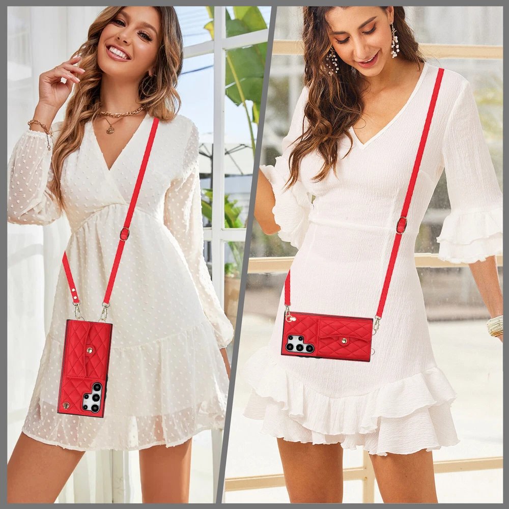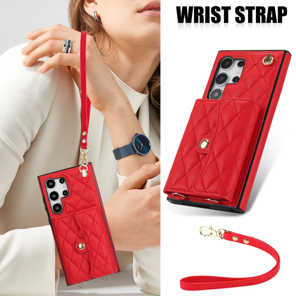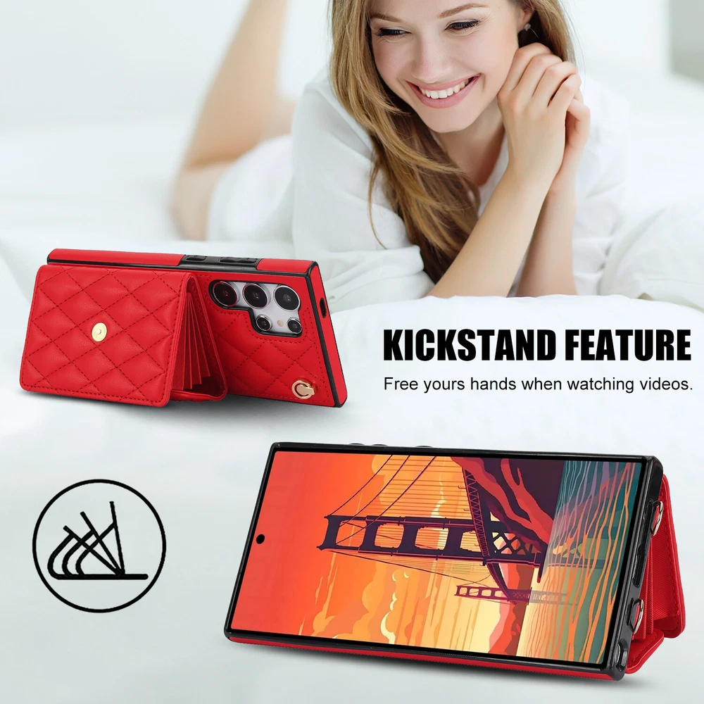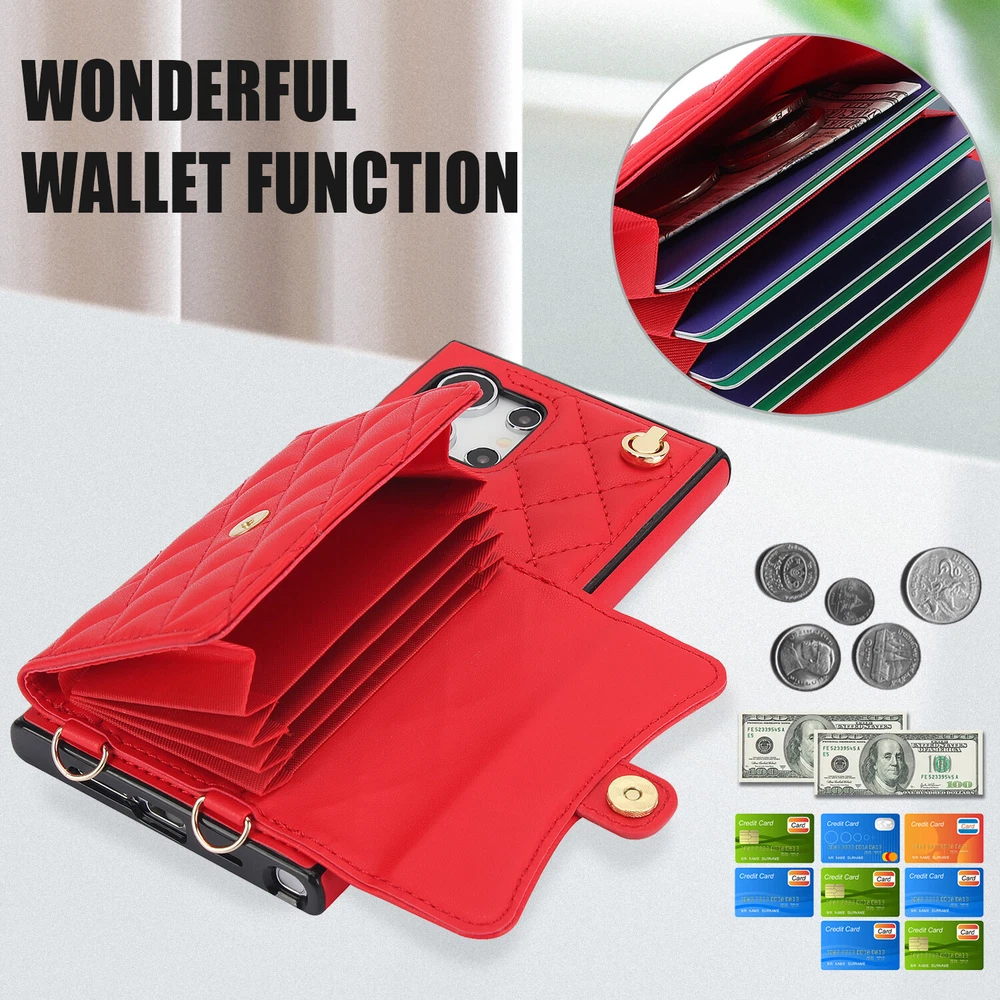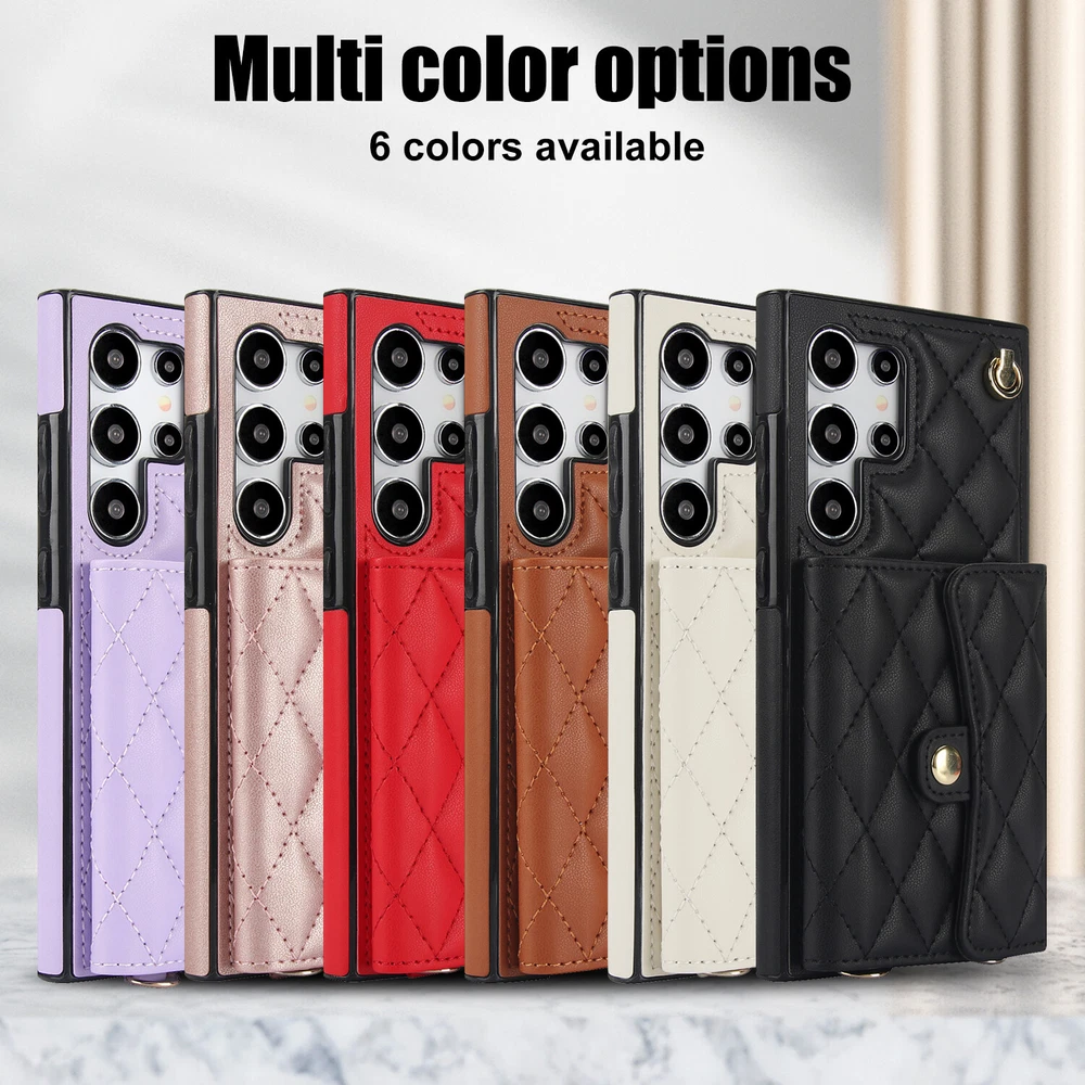 Leather Case For Samsung Galaxy S24 Ultra S23 FE S22 w/ Back Card Wallet+Lanyard Product Features: Premium Leather Design: Crafted from high-quality leather, this case for iPhone offers durability and a luxurious appearance while providing excellent protection against scratches and daily wear. Back Card Wallet for 8 Cards: The integrated card wallet holds up to 8 cards securely, combining style and practicality to eliminate the need for a separate wallet. Kickstand Functionality: Equipped with a built-in kickstand, this case enables hands-free viewing, making it ideal for watching videos, video calls, or reading on your iPhone. Hand Strap & Shoulder Strap: Includes a detachable hand strap and adjustable shoulder strap for versatile carrying options, providing convenience and security during travel or daily use.