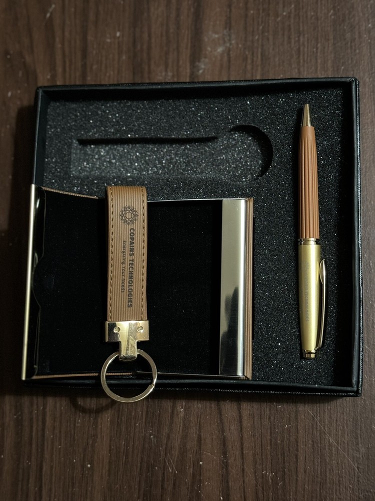 Leather Credit Card Wallet Gift Set with Key Ring and Pen for New Year