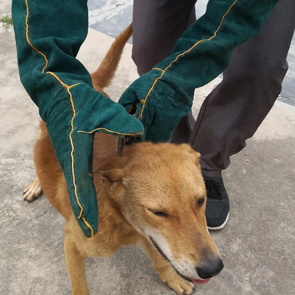 Leather Gloves Animal Handling Dog Cat Scratch Snake Bite Proof Long Mitts