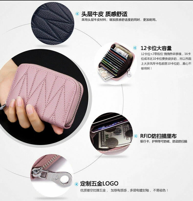 Features: Fashional,Popular Soft handfeel Zip Around Shield electronic waves to improve safety Condition: 100% Brand New & High quality Style: Zip Around Material: Leather The number of cards included in each style is different The size of each style is also different You can contact us if you have any questions Package Included: 1 x RFID Blocking Leather Card Holder Wallet