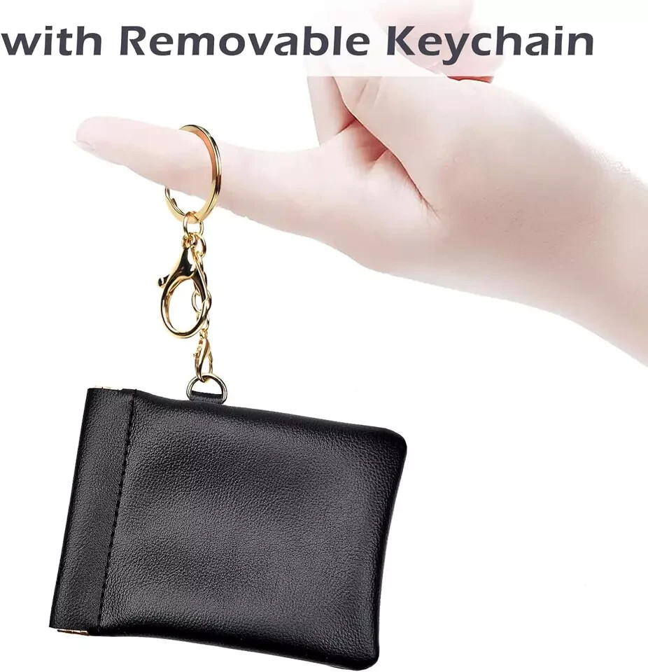 Leather Squeeze Coin Purse with Keychain Small Change Holder Slim Wallet Pouch Card Holder for Women & Men (Black) Description Item model number 1018BK Color Black Product Dimensions 4.25 x 3.35 x 0.2 inches Item Weight 1.13 ounces Department unisex-adult 【High Quality Material】This slim coin purse card holder is made of soft PU leather, this artificial leather is made resistant to water penetration and has a high fade resistance. squeeze the metal frame for easy opening and release to let the frame spring to close. the sturdy spring frame will keep your change and essentials from spilling out. 【Portable Size】Perfect size to be everyday carried approx 4.2”x 3.3”inches, It's compact, super thin and easily fits inside your pocket, handbag, backpack. 【Simple Design】Minimalist, Lightweight, Slim design, Stylish, sober, enduring. 【Good storage space】Perfect for small items such as ID/Credit Card, coin, cash, earphone, earbud, earpieces, Chapstick, Lipstick, SD memory card, etc.