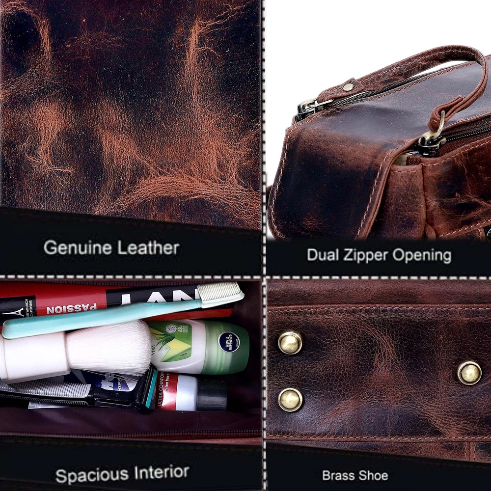 Genuine Buffalo Leather Unisex Toiletry Bag Travel Dopp Kit Versatile Usage for Travel and Daily Life: Ruzioon's Dopp Kit serves as a multifunctional toiletry bag, makeup bag, and travel makeup bag, making it an indispensable personal item travel bag suitable for various occasions and genders. Spacious Interior with Organization: The bag measures 10 x 5 x 5 inches and accommodates toiletries, grooming essentials, and small items, as well as a convenient zippered pocket. As a toiletry bag for women or men or as a makeup organizer bag, it caters to a variety of needs. Classic Vintage Style: Inspired by traditional Dopp kits, this leather toiletry bag for men seamlessly blends vintage charm with contemporary functionality, making it a timeless choice as a makeup bag organizer and a versatile Dopp kit suitable for different lifestyles and preferences. Crafted from High-Quality Materials: Made from the finest buffalo leather, Ruzioon's Dopp Kit ensures durability and develops a rich, natural patina over time, guaranteeing longevity and style in every use, whether it's used as a toiletry bag, makeup bag, or for organizing personal grooming items. Prioritizing Consumer Safety: Ruzioon adheres to stringent manufacturing standards, ensuring that all products are free from harmful materials, and providing reassurance to customers about the safety and quality of their purchases. Description Ruzioon is excited to bring you wide range of Leather Bags and Accessories. At Ruzioon we believe that quality makes a Brand. We choose from the finest quality of raw materials available. We take great pride in product quality and consumer safety following strict golden standards in the manufacturing process. This product is free of any harmful and toxic materials that could affect the health. We founded this brand two years ago with the sole purpose of ensuring that you the consumer live a comfortable hassle free life. We take great pride in the interest of our customers and as such ensure that all our products are not only beautiful but as well high-quality made. Size - 10 x 5 x 5 inches SHIPPING Domestic Buyers - We have confidence in our products, but if you are not fully satisfied please contact us within 30 days of purchase and you will get full refund. - We ship within 3 business days of payment, usually sooner - We offer FREE shipping on all orders! - We only ship to the lower 48 states, no APO/FPO addresses or PO Boxes allowed International buyers – please note: Import duties, taxes, and charges aren't included in the item price or postage cost. These charges are the buyer's responsibility. - Please check with your country's customs office to determine what these additional costs will be prior to bidding or buying. * Order Cancellation Policy ** You can return a product for up to 30 days from the date you purchased it. 1. The seller reserves the right to cancel the special case only due to eBay cancellation fee. 2. The decision of seller is the final. 3. The seller will respond to the cancellation request within 2 business days. Please wait for the result of cancellation. 4. In case the cancellation is not completed by some reasons, the buyer can follow the options below to get the refund. 4.1 The buyer can reject the item when it arrives. 4.2 The buyer can send the item back to the seller within 30 days If the buyer receives item (USA Shipment ONLY). The seller will provide the FREE return label to the buyer when the buyer opens " Return Item" case on eBay by using the reason as "Change my mind" ONLY. 5. When buyer has placed the order. The order will be processed and completed by automatic warehouse system within 5 minutes. In case that buyer sends the cancellation request after 5 minutes of placing the order, the request will be rejected. **Sending direct message to cancel the order is not allowed for every case.* Return Policy For the return case - If buyer would like to return the items for refund or replacement, please CONTACT SELLER to receive the free return label from seller. The refund or replacement will be processed with the tracking number of return label which is provided by seller only. The other ways of return which are not approved by seller will not be processed for the refund or replacement.