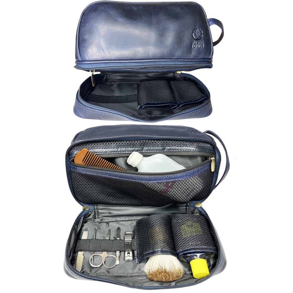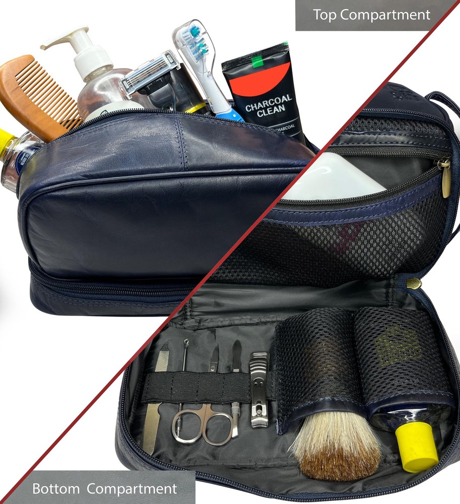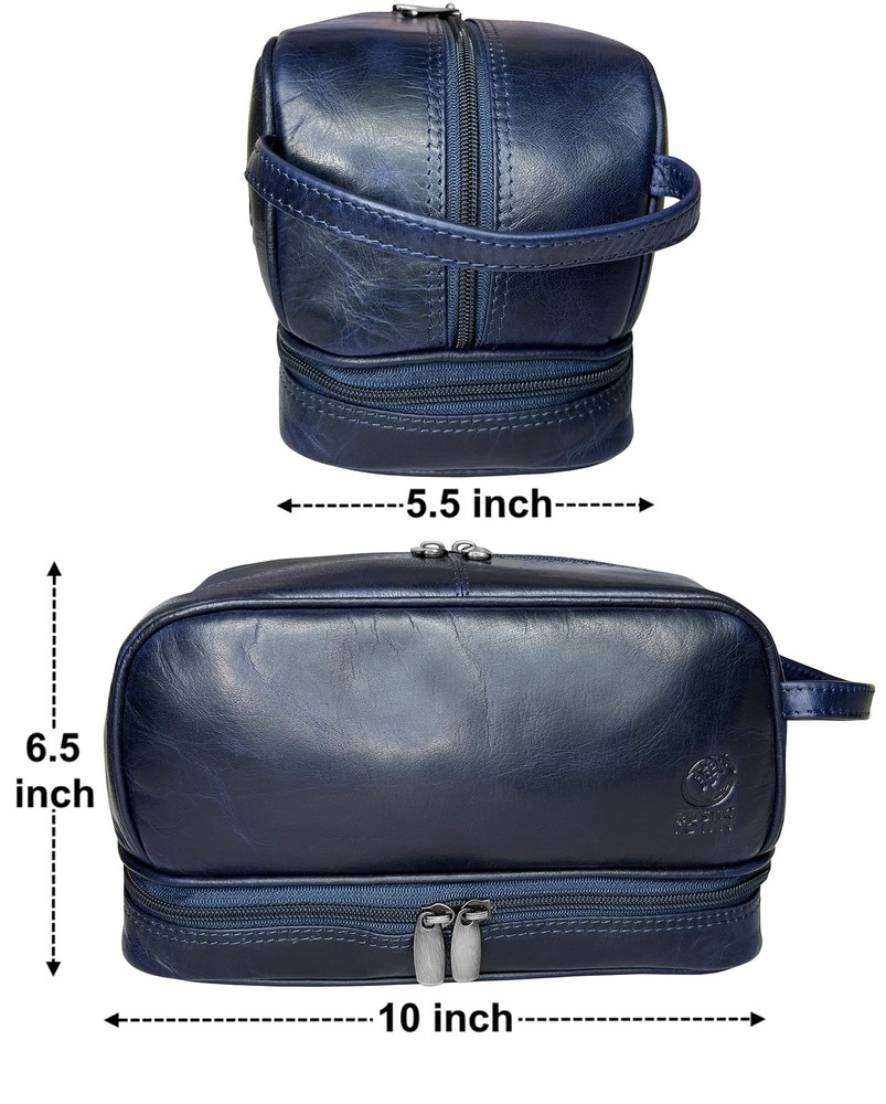 Introducing the epitome of sophistication and functionality: the Leather Toiletry Bag for Men. Elevate your travel and grooming experience with this meticulously crafted neceser de piel para hombre. Crafted from premium quality leather, this neceser de cuero para hombre exudes luxury and durability. Designed with the modern man in mind, our bolsa de afeitar seamlessly combines style and practicality. Whether you're jet-setting around the globe or simply heading to the gym, this bolsa de viaje de aseo is your ultimate companion. Say goodbye to cluttered countertops and hello to organized bliss with our sleek kit de dopp. This regalo para hombres is more than just a toiletry bag; it's a statement piece. Its spacious interior and multiple compartments ensure that all your essentials are neatly stored and easily accessible. From grooming products to tech gadgets, this mens toiletry travel bag has room for it all. Experience the convenience of effortless travel with our TSA approved leather toiletry bag for men. Its timeless design and impeccable craftsmanship make it the perfect toiletry bag for men of discerning taste. Say goodbye to flimsy plastic bags and hello to sophistication with our toiletry bag for men. Whether you're on a weekend getaway or a business trip, our mens travel bag toiletry keeps you organized and prepared for any adventure. Pack your dopp kit with confidence, knowing that your grooming essentials are safe and secure. Unleash your inner gentleman with our shaving bag that exudes elegance and functionality. Its compact design makes it the ideal companion for your daily grooming routine. Elevate your grooming game and make a statement with our cosmetic bag that combines style and utility seamlessly. Indulge in the luxury of our leather toiletry bag for men and elevate your grooming routine to new heights. Simplify your daily tasks, entertain your senses, and enhance your productivity with this must-have accessory. ✅ Luxurious Patina: Unleash the beauty of Full Grain leather that only gets better with time. Our Wash Bag isn't just a travel necessity – it's a statement piece that develops a rich patina as it journeys with you. The more you use it, the more it tells a unique story, making it a cherished companion on all your adventures. ✅ Spacious Top Compartment: Our leather shaving bag features a roomy top compartment that effortlessly organizes your travel essentials. Its adaptability extends from your bathroom to your grandest adventures, accommodating shaving essentials to makeup must-haves, it's your go-to accessories kit that ensures you're always prepared. ✅ Separate Bottom Compartment: Uniquely designed, our leather dopp kit features a convenient bottom compartment that opens to your shave brush, shave soap, and razor in mesh pockets and a stretchable spandex strip for clippers, tweezers, razors, brushes, and creams. ✅ Thoughtful Dimensions: With dimensions L-26.7cm x W-13.9cm x H-16.5cm, our leather travel toiletry bag strikes the perfect balance between compactness and capacity, ensuring it fits seamlessly into your carry-on, holdall, backpack, or gym bag while providing ample space for your essentials. 🎁 Versatile Gift: Searching for the perfect gift? Look no further. Our Leather Sponge Bag is an impeccable choice for any occasion. Whether it's a birthday, Christmas, wedding, or a special 3rd anniversary, this bag is a thoughtful and versatile gift that shows you care. Make someone's day with this stylish and functional accessory.