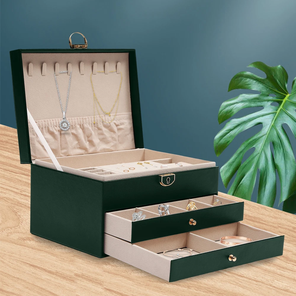 Specification Color: Green Material: PU, Velveteen, Zinc Alloy Shape: Rectangular Style: Modern Surface Treatment: Electroplating Process Number of Tiers: 3 Target Audience: Women, Men, Boys, Girls Net Weight: 1.2kg/2.6lbs Gross Weight: 1.5kg/3.3lbs Package Size: 25*19*15.5cm/9*7*6inch Product Size: 23*17*13.5cm/9*6.7*5.3inch Package Included 1* Jewelry Box 1* Key Watch Box Case Jewelry Organizer Watch Holder Display Case PU Watch Storage Box Description To well classify jewelry while keeping them in order, this jewelry box with three layers is your ideal choice. The box treasures not only the valuables but the excellent old days and memories. Wake up in the morning and dress up as you please, bringing you a beautiful mood. Specification Color: Green Material: PU, Velveteen, Zinc Alloy Shape: Rectangular Style: Modern Surface Treatment: Electroplating Process Number of Tiers: 3 Target Audience: Women, Men, Boys, Girls Net Weight: 1.2kg/2.6lbs Gross Weight: 1.5kg/3.3lbs Package Size: 25*19*15.5cm/9*7*6inch Product Size: 23*17*13.5cm/9*6.7*5.3inch Package Included 1* Jewelry Box 1* Key Key Features Premium Material : The PU is odorless , moisture-proof , waterproof , and can resist shock and deformation, allowing this product to be used for a long time. Large Storage Space : Designed with three tiers of multiple compartments, 8 built-in hooks, and a storage bag, this watch box offers plenty of space for sorted storage to suit most watches and jewelry on the market to simplify your lifestyle. Lockable Design : The first tier can be locked to prevent your items from being stolen or lost. Full Pull-out Drawer: The full pull-out design of the drawers display all the jewelry and make it more convenient for you to get it. A Great Gift: It combines timeless design elements with unmatched practicality, and is an ideal choice for gifts. You can present it to your family, friends, colleagues, etc for New Year, Birthday, Valentine's Day, Wedding, Christmas, and Father's Day. Details Velveteen Lining : The soft velveteen lining is anti-slip and comfortable to touch so that the valuables are better cared for. Durable Hardware : The hardware is made of high-quality zinc alloy with an ele ctroplating process , so it can resist wear, corrosion, and rust. Application It can be mainly used to store watches and glasses, as well as bracelets, necklaces, earrings, rings, brooches, and other accessories. It is also a great gift for your mom, wife, husband, daughter, or girlfriend. Notes Please wipe it with a soft cloth for daily care and keep it away from moisture. Please allow the slight color difference caused by the shooting light and 1-3cm error due to manual measurement, and make sure you do not mind before ordering. Payment Delivery details Terms of sales About us Contact us Payment We accept ebay payment 。 Fees such as import duties, taxes are not included in the item price or shipping costs. These charges are the buyer's responsibility. Delivery details Shipping: 2-9 working days to: USA Terms of sales We maintain high standards of excellence and strive for hundred percent customer satisfaction. Feedback is very important to us. We hope that you contact us immediately before you give neutral or negative feedback, so that we can address your concerns. It is impossible to address issues if we do not know about them! About us Your satis faction is our ultimate goal. We work hard to earn your trust and future business. Our certified technicians have tested each item before shipping. The unit comes with 1 year limited warranty on all manufacturing defects. a) If you receive a defective item, you may return it or ask for a discount. Please contact us within 14 days after you receive the package. b) What you returned must be intact and in its original packaging as re? u. Customer is responsible for shipping costs of the returned item. c) We will cover the cost of shipping back t with the shipping rate indicated in the registration page. We will send you a new unit or refund the full payment you paid. Thank you. Contact us Business Hour Business Hour: Monday To Friday: 8:30 AM to 5:00 PM (Beijing China time) Due to time zones, our reply to your questions may not be immediately. But within above working time, we will reply your email within 24 hours. If it's non-workdays, please kindly be patient and wait till Monday. Please contact us with ebay message. Please feel free to contact us if you have any questions. Monday To Friday: 8:30 AM to 5:00 PM (Beijing China time) Due to time zones, our reply to your questions may not be immediately. But within above working time, we will reply your email within 24 hours. If it's non-workdays, please kindly be patient and wait till Monday. Please contact us with ebay message. Please feel free to contact us if you have any questions. !Features Compact Design,Unique Appearance,High quality Highlights Sturdy and Durable,Long Service Life Characteristic Convenient Use Application Multi-Purpose Features 🔥High Performance🔥High Safety🔥Good Stability🔥 Type Jewelry Box Material PU, Velveteen, Zinc Alloy Color Green Brand Unbranded Shape Rectangular Number of Tiers 3 Target Audience Women, Men, Boys, Girls Product Size 23*17*13.5cm/9*6.7*5.3inch Net Weight 1.2kg/2.6lbs UPC Does not apply