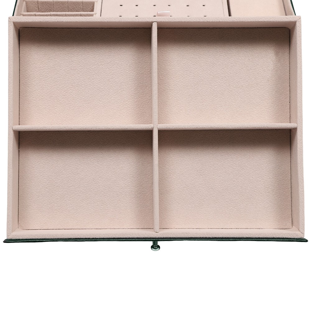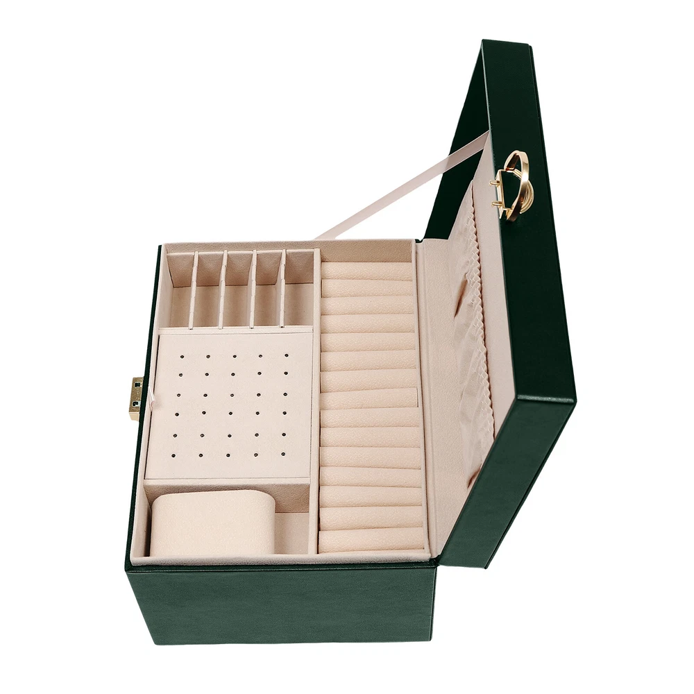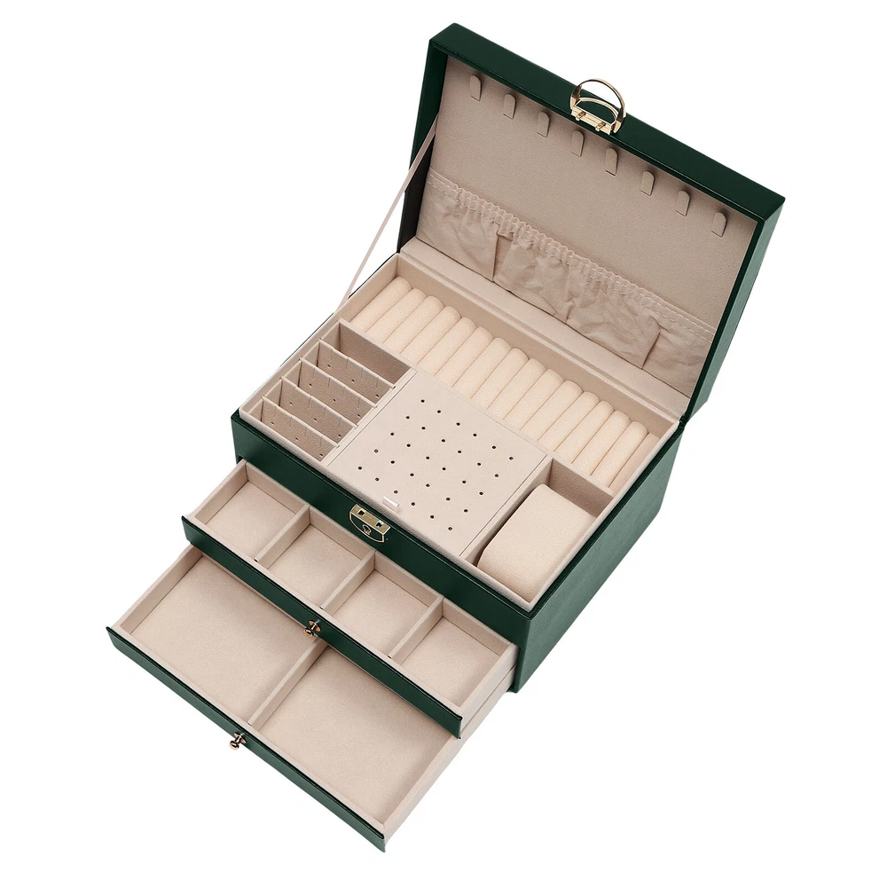 This watch box is a game-changer for keeping jewelry and watches organized! The sleek green PU and velveteen interior adds a touch of luxury while protecting delicate items. With three spacious tiers, it fits watches, rings, and more without clutter. The sturdy zinc alloy frame and electroplated finish give it a modern, high-end look. Perfect for anyone who loves a tidy display—great gift for men, women, or teens. Lightweight yet durable, it’s a must-have for keeping valuables safe and stylish. Love how everything stays in place!