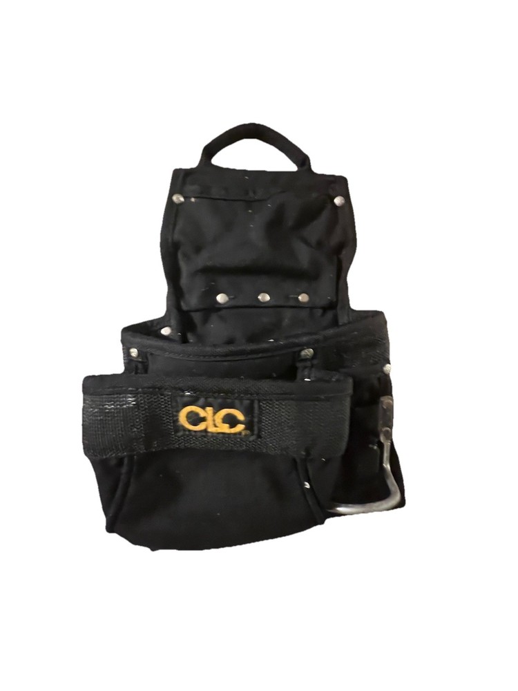 CLC Customer Leathercraft Tool Belt Carpenters Size L Polyester 48" Max Waist used has qhite paint stain one the pouches got wet so may have smell from being wet
