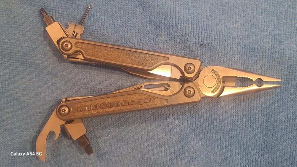The Leatherman Charge XTi Multi-Tool is a versatile tool designed for outdoor activities. Made with 154CM stainless steel, this multi-tool features a straight edge blade and includes various tools like pliers, knives, screwdrivers, a ruler, and more. It comes with a sheath for convenient carrying and storage. Manufactured in the United States by Leatherman, known for their quality products, this Charge XTi model boasts a lifetime warranty, ensuring durability and reliability for all your camping and hiking adventures.