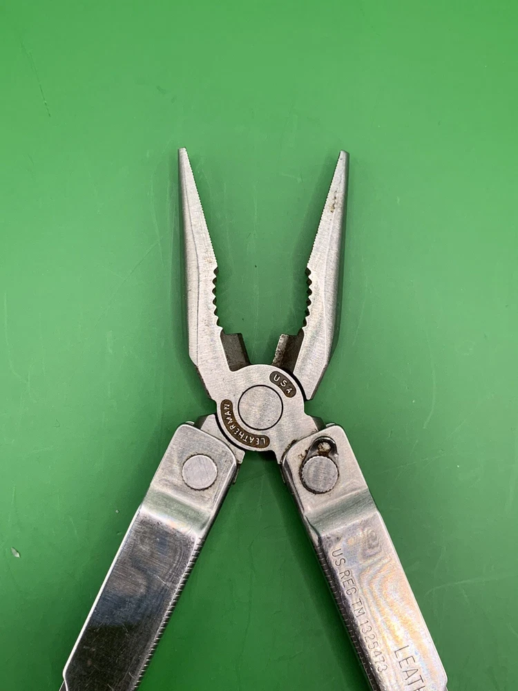 Used Leatherman multi tool with sheath. Has some wear on the handles and the blades may need to be sharpened. Could use some oil and a little cleaning. See pictures for overall cosmetic condition. By purchasing you affirm that you are of legal age and aware of all applicable laws.