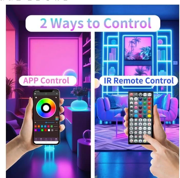Led Lights for Bedroom 50ft (1 Roll), Color 50 ft, RGB (Red, Green, Blue) Product Details Color: RGB (Red, Green, Blue) Brand: NBBUFF Indoor/Outdoor Usage: Indoor Special Feature: Corded Light Source Type: LED Power Source: AC Light Color: RGB Theme: Christmas, Music Sync Occasion: Christmas, New Year, Bedroom, Birthday, Halloween Style: Modern Material: Plastic, Copper Controller Type: Remote Control, App Control Connectivity Protocol: Bluetooth Connectivity Technology: Bluetooth Number of Light Sources: 180 Voltage: 24 Volts Included Components: Led Strip Lights*1, Controller*1, Remote Control*1, Power Adapter*1, Instruction*1 Number of Items: 1 Control Method: App, Remote Water Resistance Level: Not Water Resistant Wireless Communication Technology: Bluetooth Seasons: All Seasons Manufacturer: NBBUFF Item Weight: 6.9 ounces Package Dimensions: 8.15 x 6.61 x 0.79 inches Country of Origin: China Item model number: NB-rgb001-1 Special Features: Corded Batteries Required?: No Package Dimensions : 8.15 x 6.61 x 0.79 inches; 6.88 ounces Item model number : NB-rgb001-1 Manufacturer : NBBUFF Country of Origin : China Color: RGB (Red, Green, Blue) Brand: NBBUFF Indoor/Outdoor Usage: Indoor Special Feature: Corded Light Source Type: LED Power Source: AC Light Color: RGB Theme: Christmas, Music Sync Occasion: Christmas, New Year, Bedroom, Birthday, Halloween Style: Modern 【Adhesive Tape Accessory】The tape offers enhanced adhesive properties, ensuring a secure hold and preventing the led strip lights from falling off 【Sync with Music】Built-in sensitive microphone, the led lights 50ft can change colors and speed by detecting the rhythm of the surrounding sound and music. It can also sync to music by a smartphone with the app. These ambient lights will let you enjoy the dynamic party atmosphere 【Smart App and Remote Control】You can use the remote and app to control the rgb led strips, freely choosing multicolour and different modes (like Flash, Jump, Fade, etc.), enhancing the beauty of your room decor aesthetic. . Multiple identical rolls of led tape lights with remote can be controlled by the same remote control 【Timing Setting】With the timer function, it can automatically turn on and off, you can set the wake-up time and end time to turn it on/off automatically, putting you in a good mood every day 【Adjustable Brightness】The dimmable led strip lights brightness can be adjusted via the remote control to one of five levels: 20%, 40%, 60%, 80% or full brightness. Alternatively, the brightness can be adjusted between 1% and full brightness via the app, allowing users to meet their specific requirements 【Wide Use】These RGB LED lights can bring you a visual feast. They are perfect for birthday parties, Christmas, Easter, Halloween, carnival, prom, and weddings. The led lights for bedroom are suitable for house ornamentation, especially for festival needs 【Beautiful Decoration】These RGB LED strip lights for bedroom 50 ft decorate and colorize larger areas giving you more coverage and more design options. Perfect led lights for bedrooms, kitchens, stairs, dining rooms, ceilings 【Easy to Use】 You can control the led strip lights via remote and app control for selecting colors, changing modes, and adjusting brightness 【Easy Installation】With the adhesive backing, just stick the light strip to a clean, dry surface, and you can use the included tape to enhance the adhesion. Please test the led light strips before installation and install it carefully. If you have any questions during use, please contact us