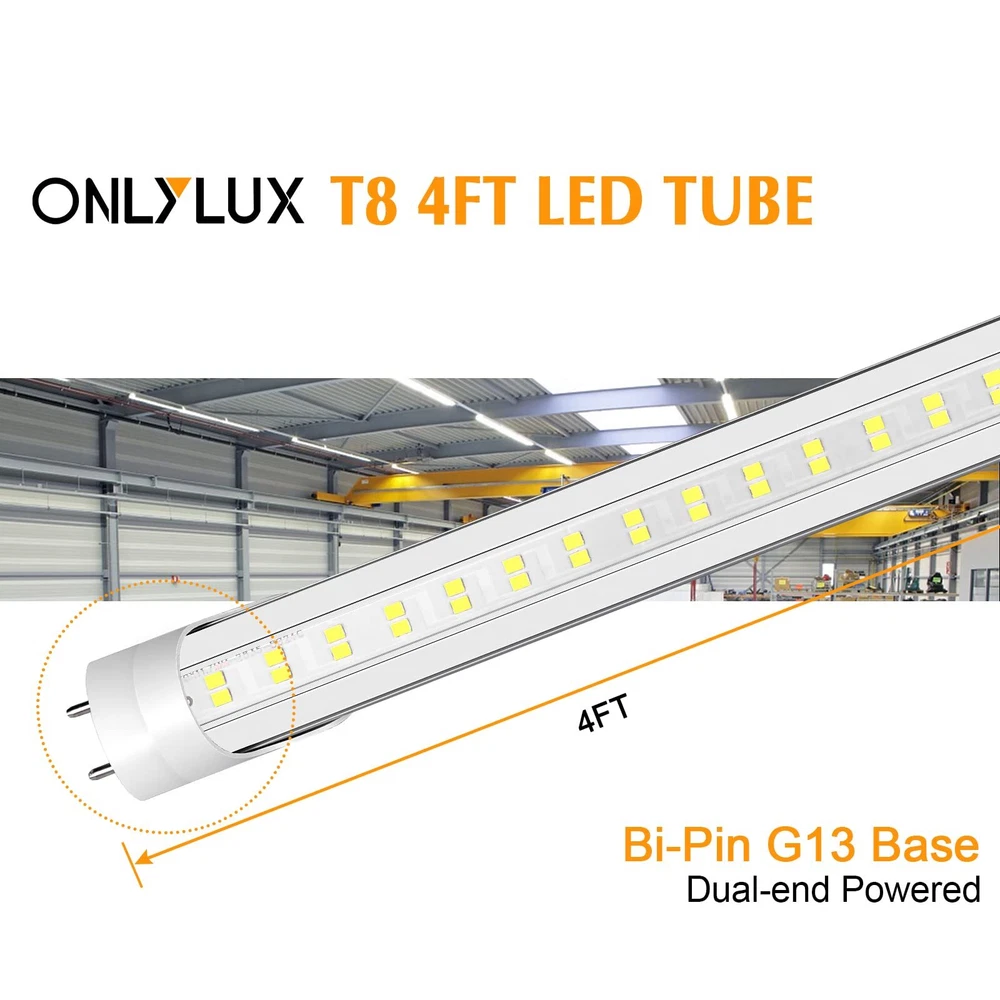 SPECAIAL DESING: led with Dual Row LED Design, Wider LED board has excellent heat dissipation, bring double brightness, Illuminate the darker corners of your space! Instant on, no delay, no falshing. EASY INSTALLATION: International standard shape for 4ft led tube light G13 Base, Easily fitted instead of traditional fluorescent tube lamps, bypass the starter and ballast before installation. Then Plug in and light on right on righr away. No extra replacement parts necessary. Non-dimming. ETL LISTED: t12 led 4ft have been tested and listed by the ETL. WIDE APPLICATION: This 4ft tube Light widely used in garage, schools, hospitals, warehouses, supermarkets, offices, convenience stores, shops, hotels, etc. AFTER-SALES SERVICE: Easy and fast replacement is offered if any quality issue, you can find our staff through the order or installation instructions.