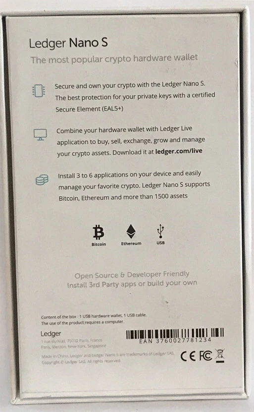 Introducing the Ledger Nano S USB Hardware Wallet, the perfect solution for all your cryptocurrency needs. This open box wallet is compatible with Bitcoin, Ethereum, ERC-20 and many more currencies, making it the ideal choice for any miner. The wallet is designed with a hardware wallet for added security and ease of use. The Ledger Nano S is a reliable and efficient tool for storing and managing your cryptocurrency. With its compact design and user-friendly interface, it is perfect for both beginners and experienced users. This wallet is a must-have for anyone looking to keep their coins safe and secure. New item!!