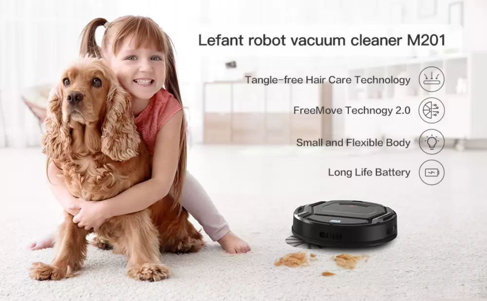 Lefant Robot Vacuum Cleaner(Slim), M201, Black Item Condition: Excellent - Refurbished, Open Box Lefant is an innovative brand. We focus on robotic vacuum cleaners and other smart appliances, helping people enjoy their lives. We're committed to creating great products to engage our loyal customers around the world. Model: M201 Small, ultra-thin and powerful suction The redesigned robot with smaller fuselage can improve the pass rate and coverage. The battery has a longer life. 1800Pa powerful suction can pick up pet hair, human hair, dust etc., ideal for families with pets. Suitable for use on low and medium carpets and very dark floors.Not suitable for high-pile carpets.Please tidy up the room. Do not place cables, socks, etc on the ground, otherwise the robot may be entangled when running. It is advisable that you follow the user manual when starting to use robot vacuum. The robot is equipped with WiFi and is compatible with and Alexa & Google Assistant.