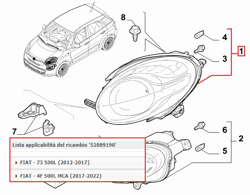 Projector Light Dipped Front Left 500L -original Fiat- 52089194 The description of this item has been automatically translated. If you have any questions, please feel free to contact us. Title of the document LOW BEAM HEADLIGHT FRONT LEFT FIAT 500L 2012/2022 -ORIGINAL FIAT- To check the compatibility of the item with your car, or for any other information, you can contact us and we will be happy to help you! - WhatsApp The item is not shipped to the Canary Islands Title of the document LOW BEAM HEADLIGHT FRONT LEFT FIAT 500L 2012/2022 -ORIGINAL FIAT- To check the compatibility of the item with your car, or for any other information, you can contact us and we will be happy to help you! - WhatsApp The item is not shipped to the Canary Islands Tecnologia di illuminazione Alogena Parti auto d'epoca No Posizionamento ANTERIORE SINISTRO LATO GUIDA MPN 52089194 Colore lenti Trasparente Caratteristiche Certificazione OE Caratteristiche Fari originali Codice attacco lampadina H7 Larghezza nd QuantitĂ 1 Tipo Fanale frontale Codice ricambio originale OE/OEM 52089194 Posizionamento sul veicolo Anteriore Posizionamento sul veicolo Sinistra Marca Fiat Lunghezza nd Altezza nd Articoli inclusi Lampadine Colore dell'alloggio Cromato Numero di lampadine 2