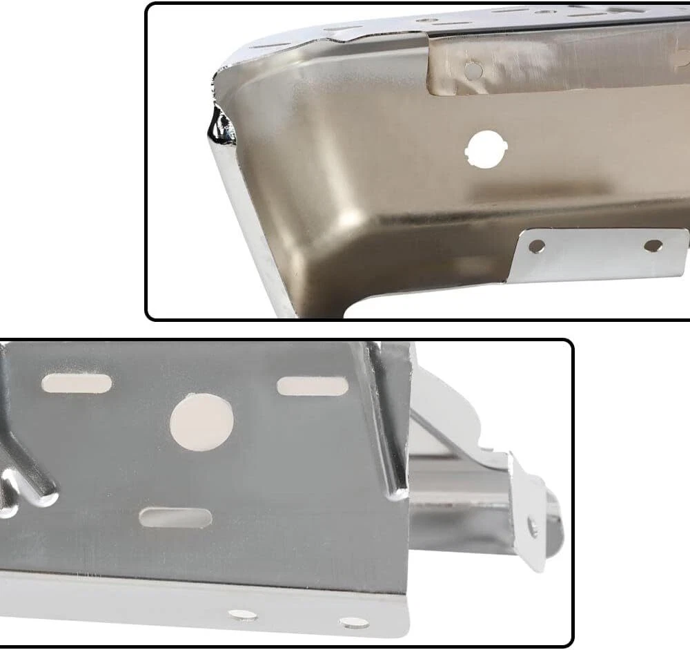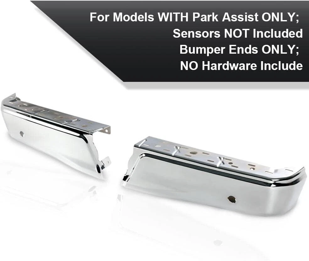 Chrome Right & Left Rear Bumper End with Parking Assist Sensor Hole Replacement for 2015-2020 F150 FL3Z17906B FO1102381 Product Description About this item COMPATIBILITY: Rear Bumper Ends Compatible with 2015-2020 Ford F150. ONLY For models with park assist sensor holes. OE STANDARD: Left & Right Rear Bumper Ends conforms to the Original Equipment (OE) standards, ensuring replacement fit just like the original. EXCELLENT WORKMANSHIP: Made of high quality Steel materials to ensure appearance, durability and fitment.With parking sensor holes for matching your sensors. EASY TO INSTALL: Direct Replacement, easy installation. Professional installation is highly recommended. QUALITY SERVICE: Our product a one-year warranty, please buy with confidence. If you have any questions, please feel free to contact. Application Compatible with 2015-2020 Ford F150. ONLY For models with park assist sensor holes. Quality You Can Trust OE STANDARD Left & Right Rear Bumper Ends conforms to the Original Equipment (OE) standards, ensuring replacement fit just like the original. EXCELLENT WORKMANSHIP Made of high quality Steel materials to ensure appearance, durability and fitment.With parking sensor holes for matching your sensors. EASY INSTALLATION No modification Requires. Designed as a direct replacement for your original rear bumper ends, easy to install. Any question pls feel free to contact. Payment Delivery Details Return Feedback Contact us Payment We accept payment by any of the following methods: Delivery Details Shipping Time Your item will ship within 3 days (Mon-Fri) of your cleared payment. Items will be shipped to the shipping address you specify via Paypal only. We are NOT able to change the shipping address once payment has been made. A tracking number will be provided once your item has shipped. Domestic Buyers No shipping to PO BOX and APO addresses. No shipping to PR, AK, HI. International Buyers International buyers please note: Import duties, taxes and charges are not included in the item price or shipping charges. These charges are the buyer's responsibility. Please check with your country's customs office to determine what these additional costs will be prior to bidding/buying. Return All returns must have RMA number. Returns with no RMA number will be avoided! 1. Changed your mind and don't want the item anymore? We back our products with a 30-DAY SATISFACTION GUARANTEE! (Item must be in the original condition as it was received. 30 Days Refund, 30 Day Replacement.). Brand New items will have 30 days warranty or replacement policy. 2. Restocking fees will be charged ONLY on Brand New items. 3. Defective/Dead items will be fully refunded or replaced after matching the serial number with the one in our records. 4. Mobile phones and tablets MUST be restored to factory setting. 5. If your order arrives incorrect or the package is damaged in result of a carrier company, you must notify us within 4 days of receipt. Defective items will be credited only after matching the serial number with the one in our records. We are aware of all fraud cases and have all the items details in our records. 6. If there is a quality issue or malfunction with the product, we strongly suggest you to contact the original manufacturer. 7. Any item needed to be returned must be securely packaged, insured and shipped with tracking for safety. We cannot be responsible for lost damaged packages. We carefully inspect returned items upon receipt before any possible refunds, credits, or exchanges. Feedback Customer satisfaction is our top priority. Please give us a chance to resolve any issues before posting a feedback. If you have any problem with your order, please contact us and we will do our best to make you satisfied. Contact us Business Hours: Monday - Friday : 9:30AM – 5:30PM Eastern Standard Time. Saturday, Sunday Closed. For any questions or concerns, please feel free to contact us!
