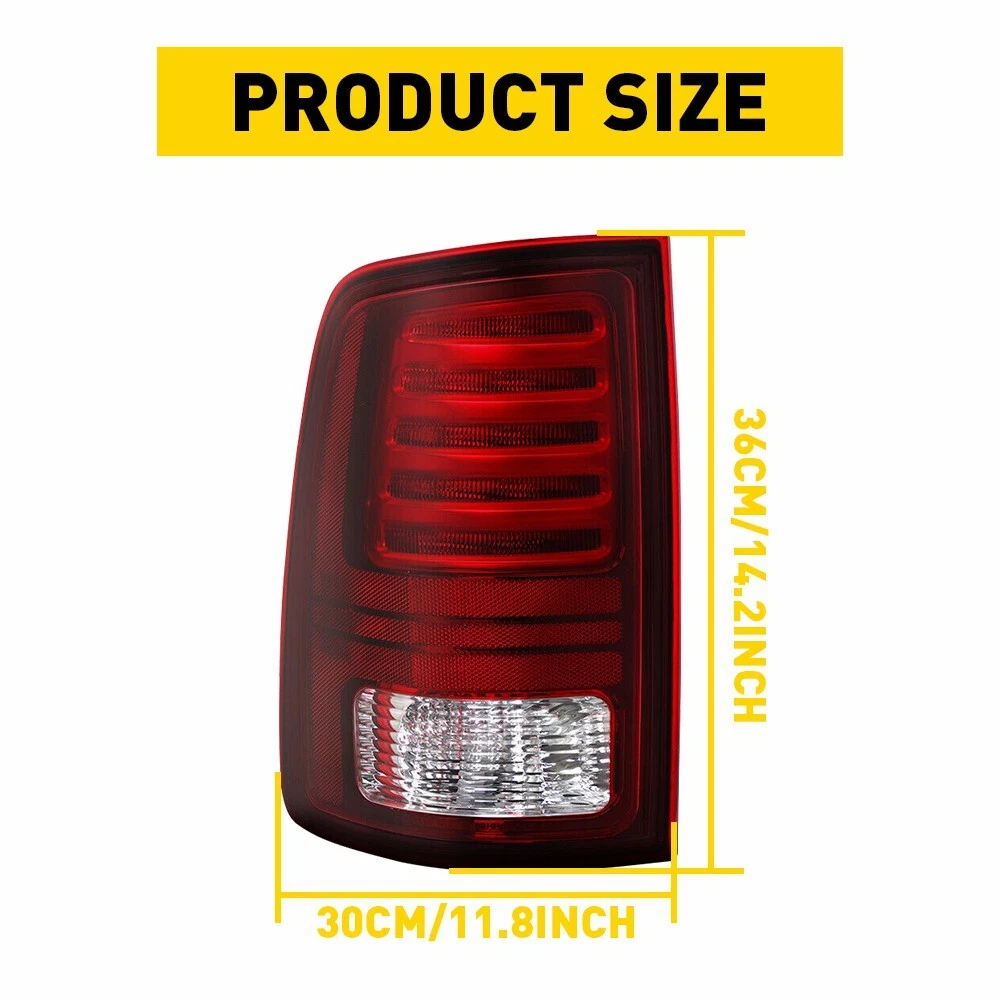 Fits For: For 2019-2022 Dodge Ram 1500 Specifications: OE:55112991AC, 55112991AD, 55112991AB Waterproof grade: IP67 Light type: LED Housing color: Red Placement on vehicle: Left Features: *Easy to install: Direct replacement, drilling and cutting are not required. *Superior quality: Superior material with toughness and heat resistance functions. *Plug and play, the LED bulb is included in the package. *No blind spots *Note: 1.Please confirm the OE number before purchasing!!! 2.Professional installation is required!!! Left Side Tail Lights For 2013 2014-2018 RAM 1500 2500 3500 LED Rear Brake Lamp Fits For: For 2019-2022 Dodge Ram 1500 Specifications: OE: 55112991AC, 55112991AD, 55112991AB Waterproof grade: IP67 Light type: LED Housing color: Red Placement on vehicle: Left Features: *Easy to install: Direct replacement, drilling and cutting are not required. *Superior quality: Superior material with toughness and heat resistance functions. *Plug and play, the LED bulb is included in the package. *No blind spots *Note: 1.Please confirm the OE number before purchasing!!! 2.Professional installation is required!!! Packaging include: Tail Light*1 ABOUT US Left Side Tail Lights For 2013 2014-2018 RAM 1500 2500 3500 LED Rear Brake Lamp Fits For: For 2019-2022 Dodge Ram 1500 Specifications: OE: 55112991AC, 55112991AD, 55112991AB Waterproof grade: IP67 Light type: LED Housing color: Red Placement on vehicle: Left Features: *Easy to install: Direct replacement, drilling and cutting are not required. *Superior quality: Superior material with toughness and heat resistance functions. *Plug and play, the LED bulb is included in the package. *No blind spots *Note: 1.Please confirm the OE number before purchasing!!! 2.Professional installation is required!!! Packaging include: Tail Light*1 FAQ Shipping Returns Contact Us Payment Why swith to LED? LEDs not only give your vehicle a clean, modern look but, with proper use, will outlast any halogen bulb and HID bulb! Low energy draw, high lumen output, and instant on/off LED technology out shines stock bulbs in every way. Which bulbs are used in my vehicle? Check Sylvania automotive lamp replacemnt guide , you can select the year, make, and model of your vehicle, then select the application you want to replace or upgrade from stock. What does CAN Bus mean? CAN Bus means Controller Area Network Bus. This system monitors your vehicle and reports operating conditions. CAN Bus systems are commonly found in European vehicles such as BMW, Audi, Mercedes, Volkswagen, Porsche, and in many American vehicles. While most late model American vehicles have CAN Bus systems, it is always good to check with your vehicle dealer to see which system your vehicle has before purchasing electrical products. When do you need Warning Canceller? Some vehicles with cmplex internal computers(such as Audi,BMW,Jaguar,Mercedes,etc.) might report on-dash errors or flickering on the headlights. The warning canceller fixes the dashboard warning and flickering effect. Bulb Out Dashboard Error: On some vehicles, the dashboard will report as if you have a headlight bulb missing or burnt. It does not affect the headlights functioning, but the light on-dash will be on. The warning canceller fixes the issue. Flickering Issue: This happens when your vehicle does not recognize the new headlights installed. When turning the headlights on, the vehicle's computer does not understand the signal back from the headlights hence thinking they are still off. This triggers the headlight flickering effect. The warning canceller solves this issue. LED Advantages: Very low and efficient energy consumption than halogen bulbs & HID Bulbs Compared with HID bulbs, LED bulbs Light up instantly, no warm up period Low voltage protection, high precision constant current driver chip Longer lifespan than HID and halogen bulbs Light can be controlled easily in color and intensity Easy to install a LED headlight conversion kit (1) We will ship your item(s) within 24 hours. (2) We ship this item to US only via USPS first class mail. It usually takes 3-6 working days to deliver. How Long Will It Take to Receive My Refund? If you have emailed us for a refund ,once we have approved it ,after 60 days your money will be refunded. The estimated time for the refund to appear in your account is based on the payment method you use. Paypal is the only supported in NIGHTEYE Store. Please notify us within 30 days after you've received your purchased item. All return requests must be submitted through your eBay account. NOTE: Buyers pay for the return shipping fee. Items to be returned must be in resalable condition, for example: You do not satisfy the item quality Item do not fit your vehicle perfect Item can not reach your expectation The item arrived be broken You do not receive the item Parcel Lost Receive the wrong item If you have problems with the above issue, please Contact Us immediately ! [Our office hours are MONDAY - Saturday 9:00PM - 6:00PM PST, but we will response you once we get your message .There will be some delay on respons if you send message or E-Mail on Sundy.] (1).Negative feedback will not help resolve any problems you have, please contact us via eBay messages before leaving negative feedback, our customer service will make best effort to help you with the issues. (2).We maintain high standards of excellenceand strive for 100% customer satisfaction! Feedback is very important to us. We request that you contact us immediately BEFORE you give us neutral or negative feedback, so that we can satisfactorily address your concerns. (1).We only accept PayPal payment, should be received within 3 days from the date of purchase. (2).Please keep the consistency of Paypal address and ebay address. (3).Payment should be made within 4 days once you won a item ,or ebay will launch Unpaid Reminder agaist you and there will be bad record on your ebay account . On Nov 16, 2024 at 06:06:02 PST, seller added the following informatio