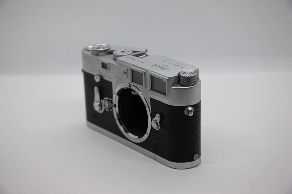 Up for sale is a Leica M3 Single Stroke 35mm rangefinder camera. This camera works wonderfully. I have film tested it myself, as this was my main film camera until I got an M2. The viewfinder looks really clean and clear. There are some scratches on the top and bottom plate, and paint rubbed off a small area(s) on the back film door, which are to be expected from a camera this old. Everything functions well. Seems to have been previously modified to focus down closer than what is normal on an M3. Has not been CLA'd, but it also has never let me down. All shutter speeds work correctly, although, I have no way of knowing how accurate they are since I do not have the equipment to test that. Take a close look at the pictures, since they will be part of the description for this camera. Please do not hesitate to reach out if you have any questions.