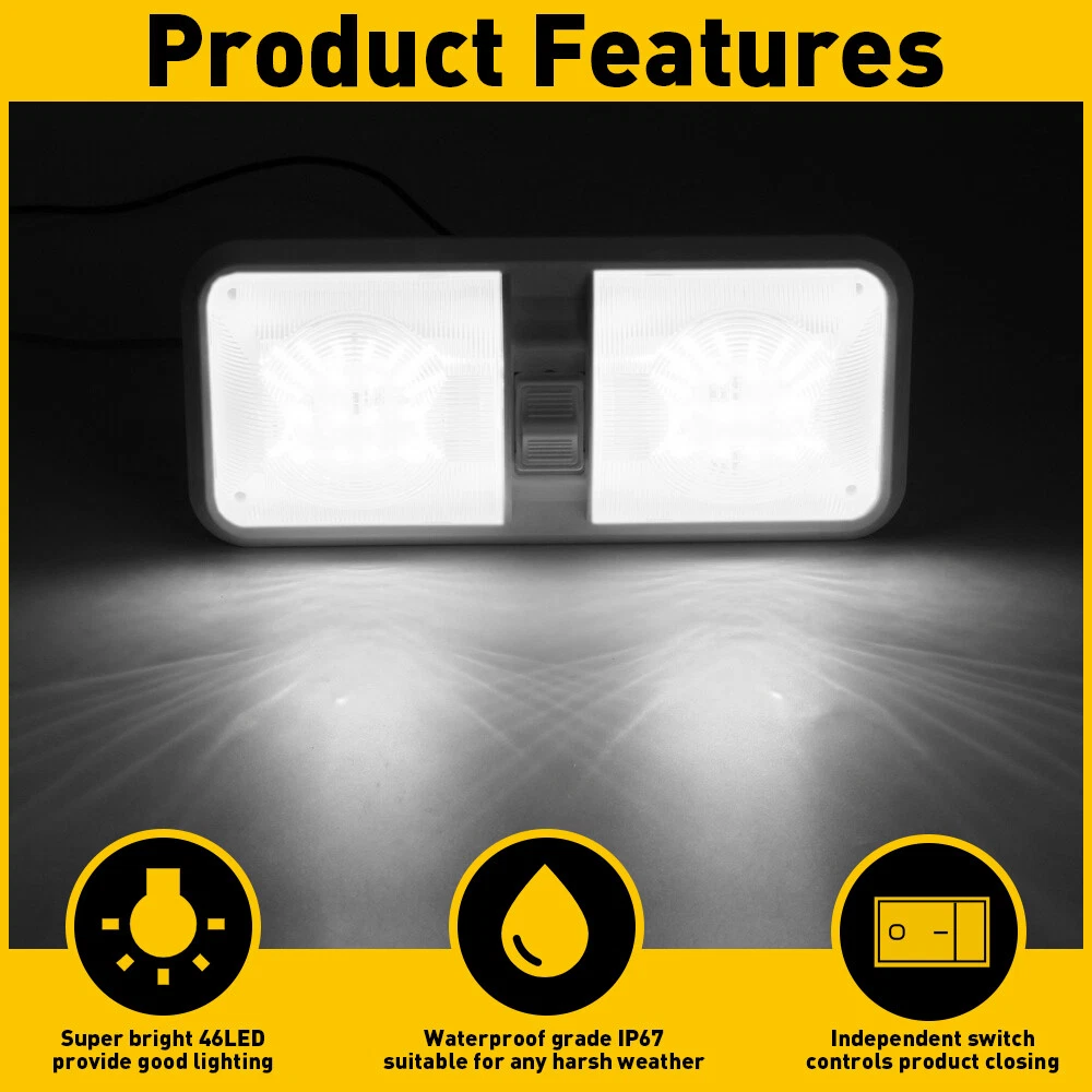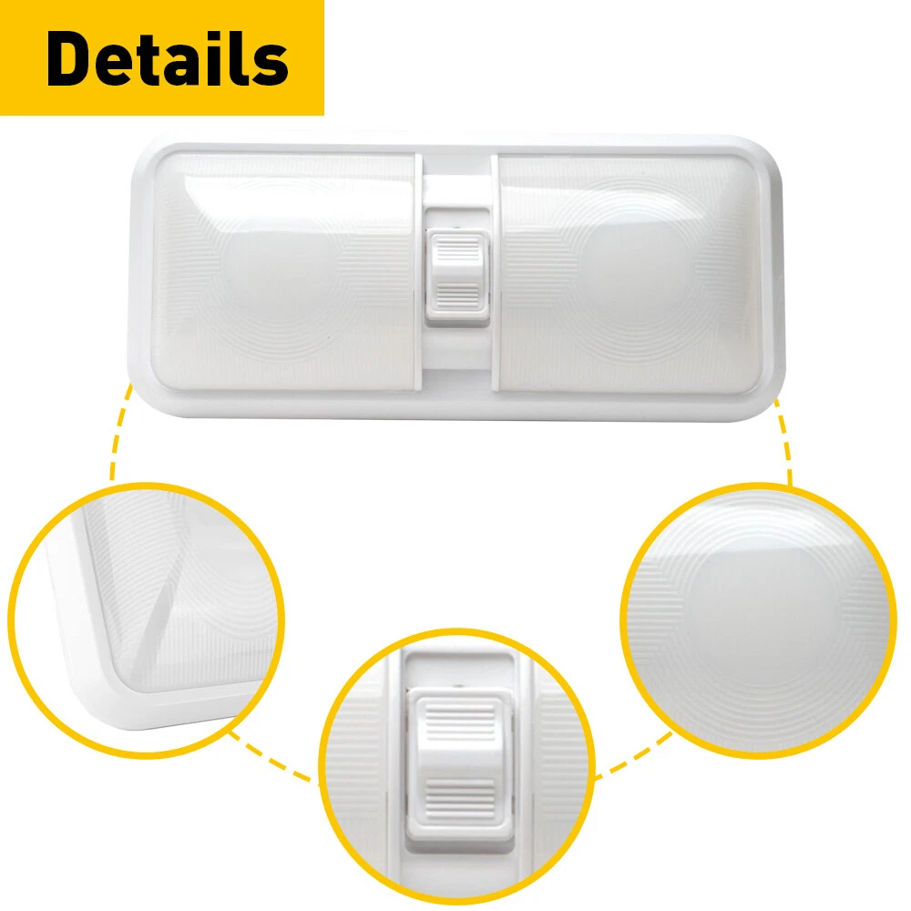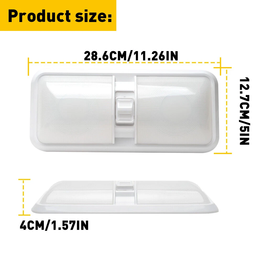 Specification: Material:PC LED: 48 LEDs(left+right) LED type:2835 SMD LED Voltage:11-18V Color temperature:4000-4500K Lumen:600LM Waterproof IP: IP67 Service life:50000h+ Features: *High-brightness and Comfortable Light Source The LED lighting lamp with three gears switch to control has built-in 48 high-quality LED chips, you can easily perform indoor work at night. *Simple installation Easy installation, Low power consumption. *IP67 waterproof Prevent from water, snow, moisture, rusting and dust, don't worry about leak inside problem. *Gears Control Leisure LED RV Interior Led Ceiling Light Boat Camper Trailer double Dome 3x Specification: Material:PC LED: 48 LEDs(left+right) LED type:2835 SMD LED Voltage:11-18V Color temperature:4000-4500K Lumen:600LM Waterproof IP: IP67 Service life:50000h+ Features: *High-brightness and Comfortable Light Source The LED lighting lamp with three gears switch to control has built-in 48 high-quality LED chips, you can easily perform indoor work at night. *Simple installation Easy installation, Low power consumption. *IP67 waterproof Prevent from water, snow, moisture, rusting and dust, don't worry about leak inside problem. *Gears Control Independent switch control can make it easy to open and close at any time. Gears description: Built in 3-way switch (to use one or both sides of light fixture) Gear 1:One side on Gear 2:light off Gear 3:Two sides on *Application It is widely used as perfect replacement light for Car/RV/Trailer/Camper/Motorhomes/Marine Boats. Packaging include: Dome light *1 Item Specifics Brand Unbranded Manufacturer Part Number Frosted DOUBLE DOME MPN Does Not Apply Weight 300g Color White Unit 1PC Material PVC Led OE Reference Number roof interior dome reading ceiling Cabin Strip Light Interchange Part Number Trailer Truck Lorry Boat Lorry Caravan Motorhome RV Voltage 12-24V LED QTY 48LEDs Power 10W Part Type Accessories Manufacturer Warranty 2 Year Custom Bundle Yes Bundle Description Camper Trailer RV Marine Modification Description RV 12v Interior light w/switch Custom Bundle Yes Bundle Description Camper Trailer RV Marine Modification Description RV 12v Interior light w/switch FAQ ♥ If you have a decoding problem or any other problems, please contact us first, we will help you with it. We will reply you within 24 hours in working days. I'm a new seller, thanks a lot for your trust and convince! I will serve you with all my heart. ♥ Q1: Will this bulb fit my vehicle? A: We can match almost any vehicle to one of our bulb sizes. eBay only lets us include some vehicle fitments per listing, but if your vehicle does not show up on the compatibility table at the top of our listings, welcome you to contact us for free consulation before purchasing a product. Q2: My item has not arrived, what's taking so long? A: Sometimes items take longer than expected, especially if it’s going far or to rural area. Check with your post office to see if your item has been held up. Sometimes Royal Mail will not update a tracking number until it has arrived at its destination. If your item still don't arrive after a few days, let us know so we can double check for you and help solve it asap. Q3: My bulbs won't fit, help! A: Special bulb holder may be required. See if you can take the holder from the stock bulb. If not, let us know. The bulb size may be wrong, double check the item you received with the item you ordered. Do you have an aftermarket lighting housing? These may not be perfectly fitted for aftermarket bulbs and will require some manual modifications. Q4: Neither side lighting up? Both sides flicker, hyper flash, or work inconsistantly. A:Check the light fuses, and then check the ballast plugs to insure correct installation. If this doesn't work, there may be a voltage problem with the vehicle. You probably just need a relay or capacitor. Even though some bulbs are builtin resistors, they may still need a decoder. Pay & Ship (1). We gladly accepts payment via PayPal, We will ship your item(s) within 24 hours. (2). Before payment, please keep the consistency of Paypal address and ebay address. (3). Quantity orders are welcome! Returns (1). We offer 60 days free return policy. Please contact us within 60 days from the date you receive your order if you have any issues with the product or want return. Refund will be send after we got your resend package. (2). All returned items should be in the original packaging , return tracking information should be provided . Contact Us (1).Negative feedback will not help resolve any problems you have, please contact us via eBay messages before leaving negative feedback , our customer service will make best effort to help you with the issues. (2).We maintain high standards of excellenceand strive for 100% customer satisfaction! Feedback is very important to us. We request that you contact us immediately before you give us neutral or negative feedback, so that we can satisfactorily address your concerns. About us We're professional in car and motorcycle accessories, especially in LED bulbs. We have our own factory and R&D team. Our belief is to sell top quality items that fit your car and serve you with our heart. Anything please feel free to contact us! Our customer service is very responsibility. Come and follow us! DESCRIPTION NEW ARRIVED HOT SALE CONTACT US SAVE US Store Category Store Home Other Hot Item AUXITO Super Bright LED Backup Reverse Light 921 912 T15 Bulbs Lamp 6500K CANBUS USD 20.69 4 Pieces 4Inch Trailer Marker LED Truck Side Light Clearance Lights Yellow Amber USD 12.34 9005 9006 LED Headlights Kit Combo Bulbs 6500K High Low Beam Super White Bright USD 34.19 54LED Emergency Light Bar Rooftop Double Side Strobe Warning Light Amber + White USD 69.99 Smoked Cab Roof Amber Marker LED Lights Kit For 1980-1997 Ford F150 F250 F350 USD 26.99 New List Item AUXITO 1157 LED Turn Signal Light Bulbs DRL Amber White Anti Hyper Flash Pair US USD 19.99 AUXITO H11 H8 H9 LED Headlight Kit Low Beam Bulb Sup
