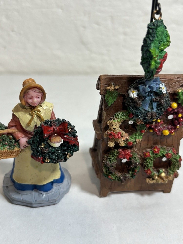 Pre Owned. Great condition. Out of box! Two separate sets sold together. Wreath display is missing sign so I replaced with a lady! Retired “Christmas greens for sale” 2005-2013 I combine shipping! Check out my page for more!