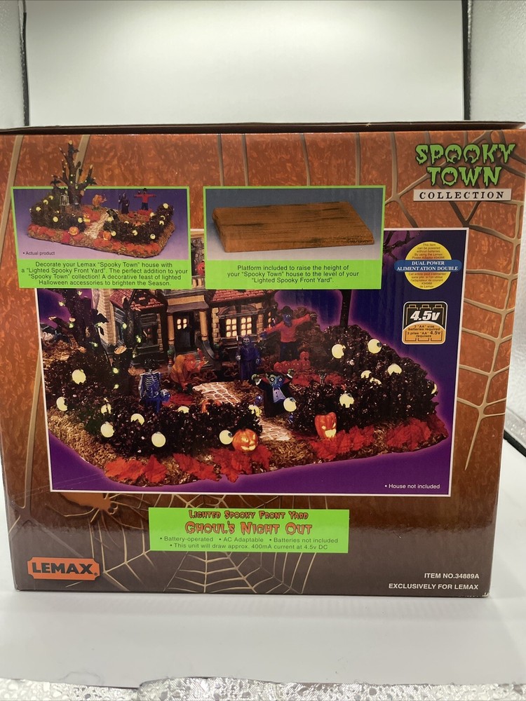 Model:Ghoul's Night OutTime Period Manufactured:2000-2009gtin13:728162348890Customized:NoEngraved:NoPackaging:BoxAntique:NoOccasion:HalloweenYear Manufactured:2003Custom Bundle:NoType:Front YardSubject:VillagesCollection:Spooky TownUPC:728162348890Brand:LemaxSigned:NoFeatures:Lights