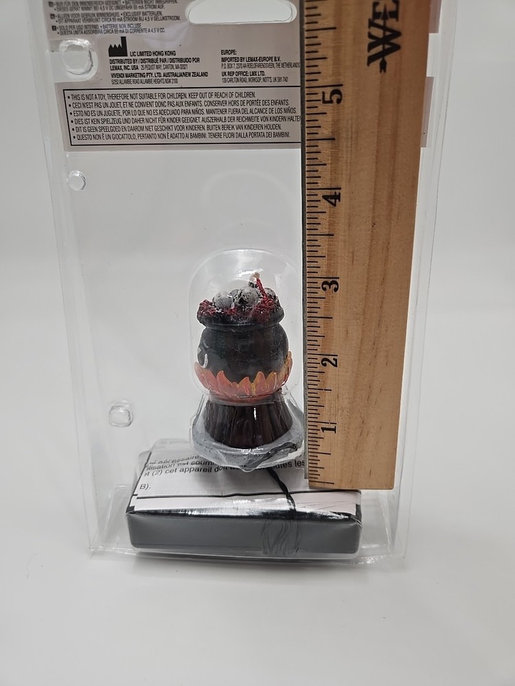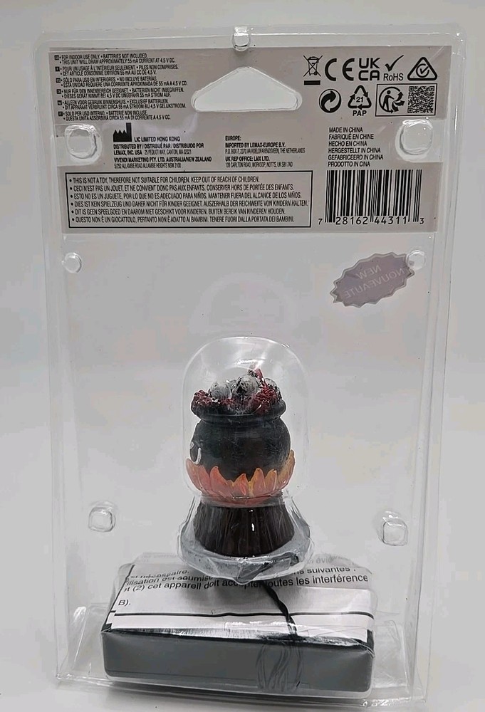 This is a small, multicolor Lemax village figurine made of resin. It features a lighted skull stew cauldron that lights up, adding a spooky touch to any room. It is part of the Spooky Town collection and was manufactured in 2024. The figurine is an original and comes in a clamshell packaging. Accessorie is new in the package and will require batteries. Batteries not included. See photos for details as they are part of my description. Message me with any questions you may have. Thank you, and please take a look at my other items. V-7