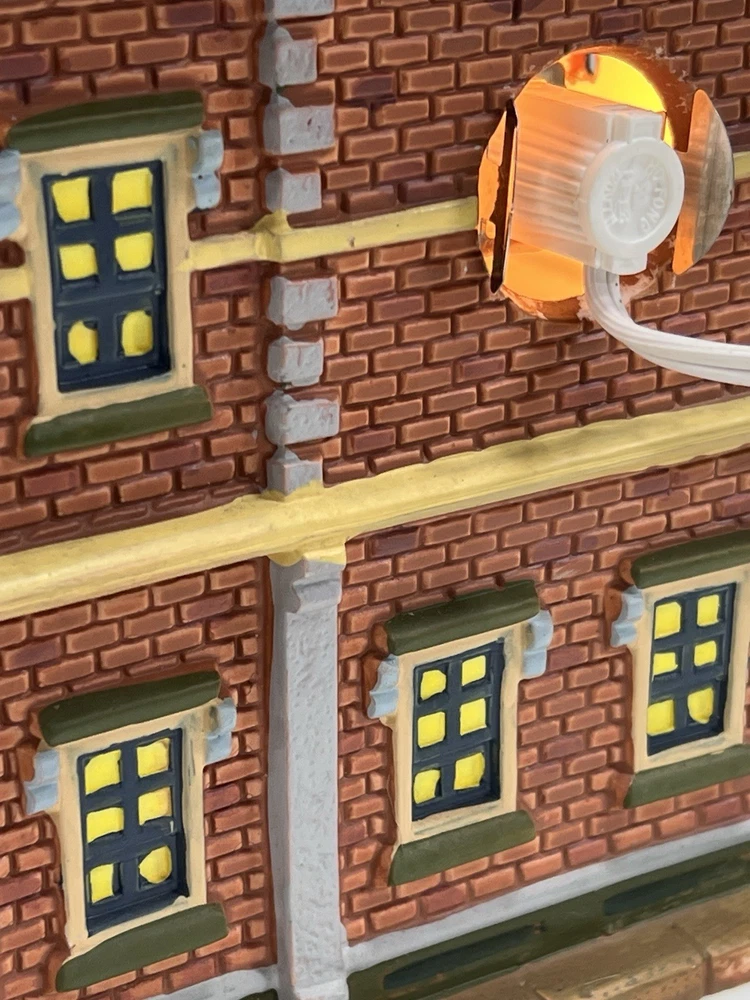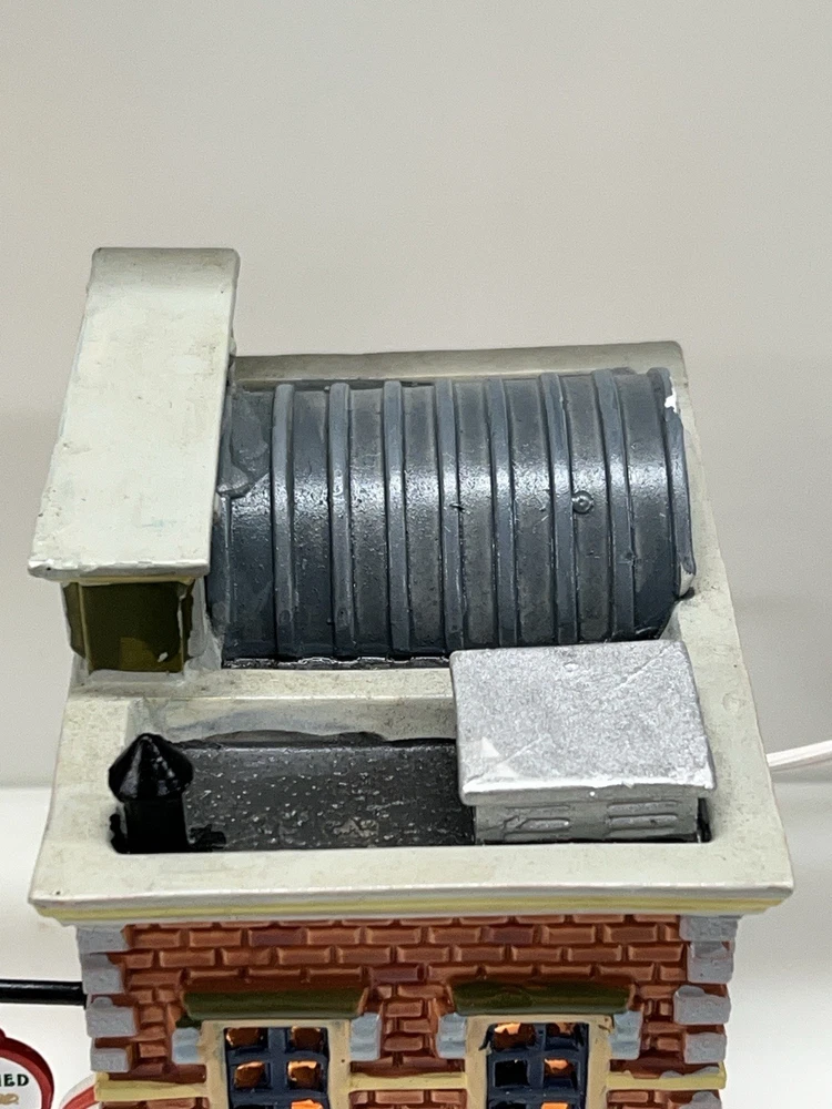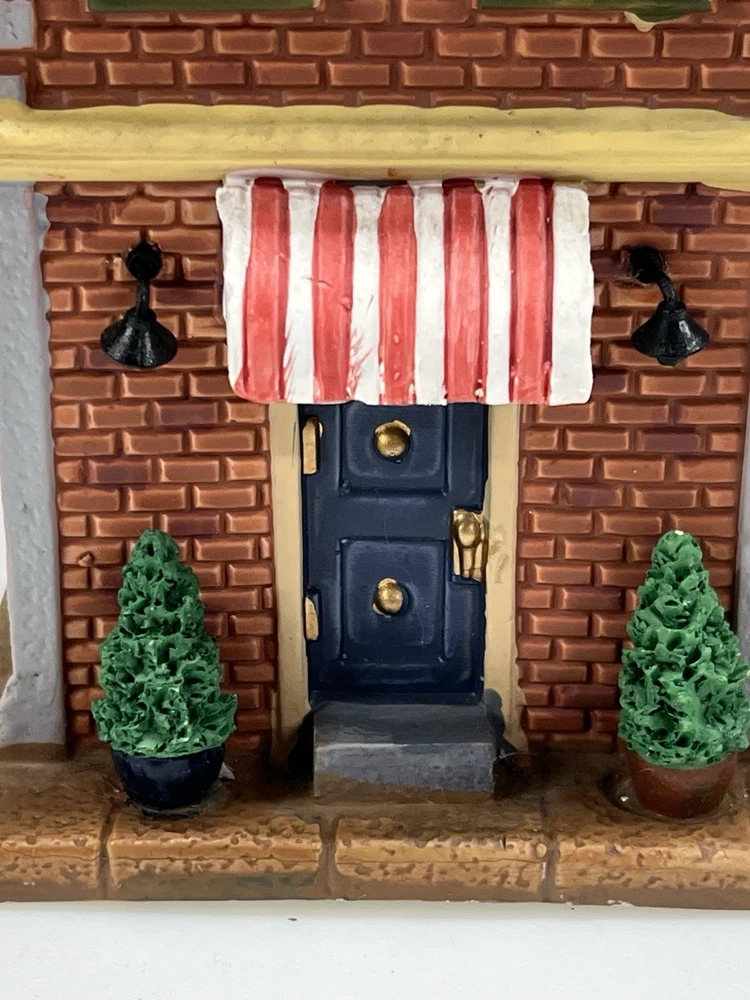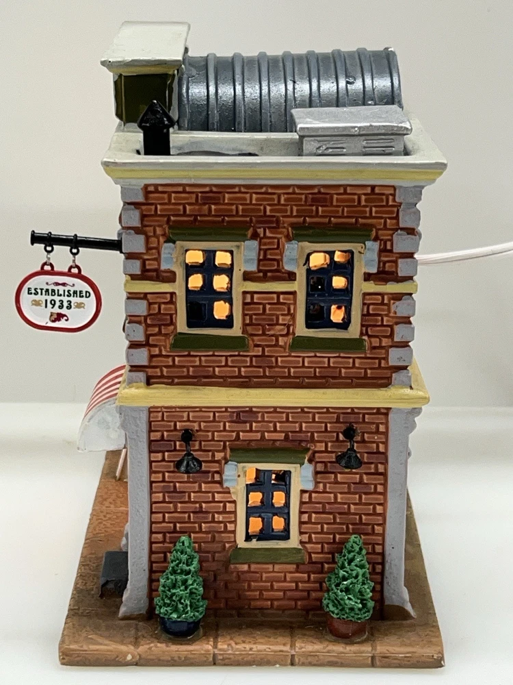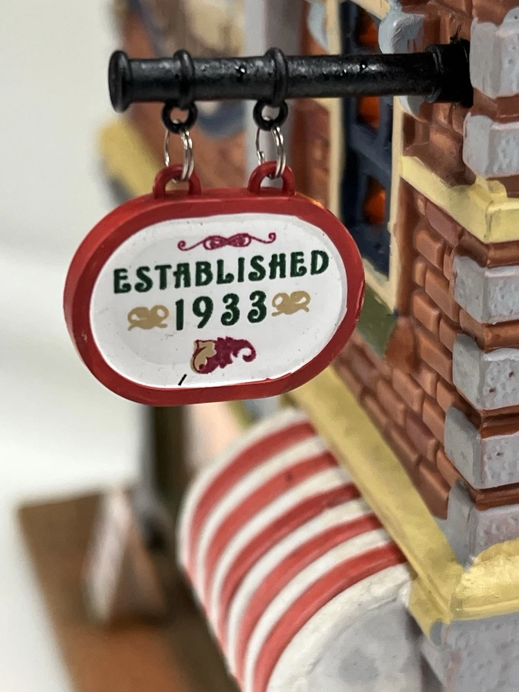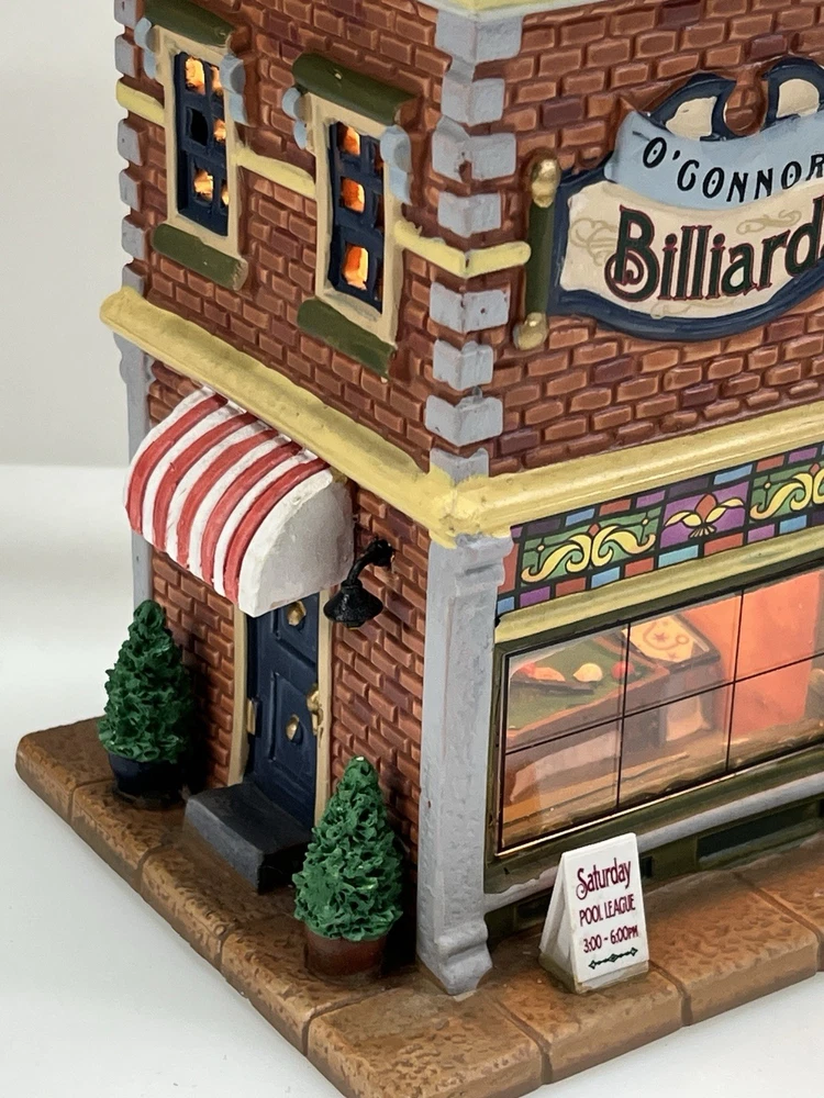 Add a touch of whimsy to your holiday display with this charming Lemax O’Connors Billiards piece from the 2012 collection. This asymmetrical, medium-sized porcelain house is beautifully painted with a delightful Billiards Hall pattern, complete with colorful characters and a festive atmosphere. The house measures 7 inches in length, 6-3/4 inches in height, and 5 inches in width, making it perfect for any room or village display. This original, retired piece is part of the Lemax O’Connor's Billiards collection and features a light and sign that add to the overall charm of the house. The house is suitable for all occasions and is perfect for adults who love American-style decorations. Don't miss out on the chance to add this unique and rare piece to your collection. Absolutely incredible condition. Includes all original packaging including light & cord . Just a beautiful piece .