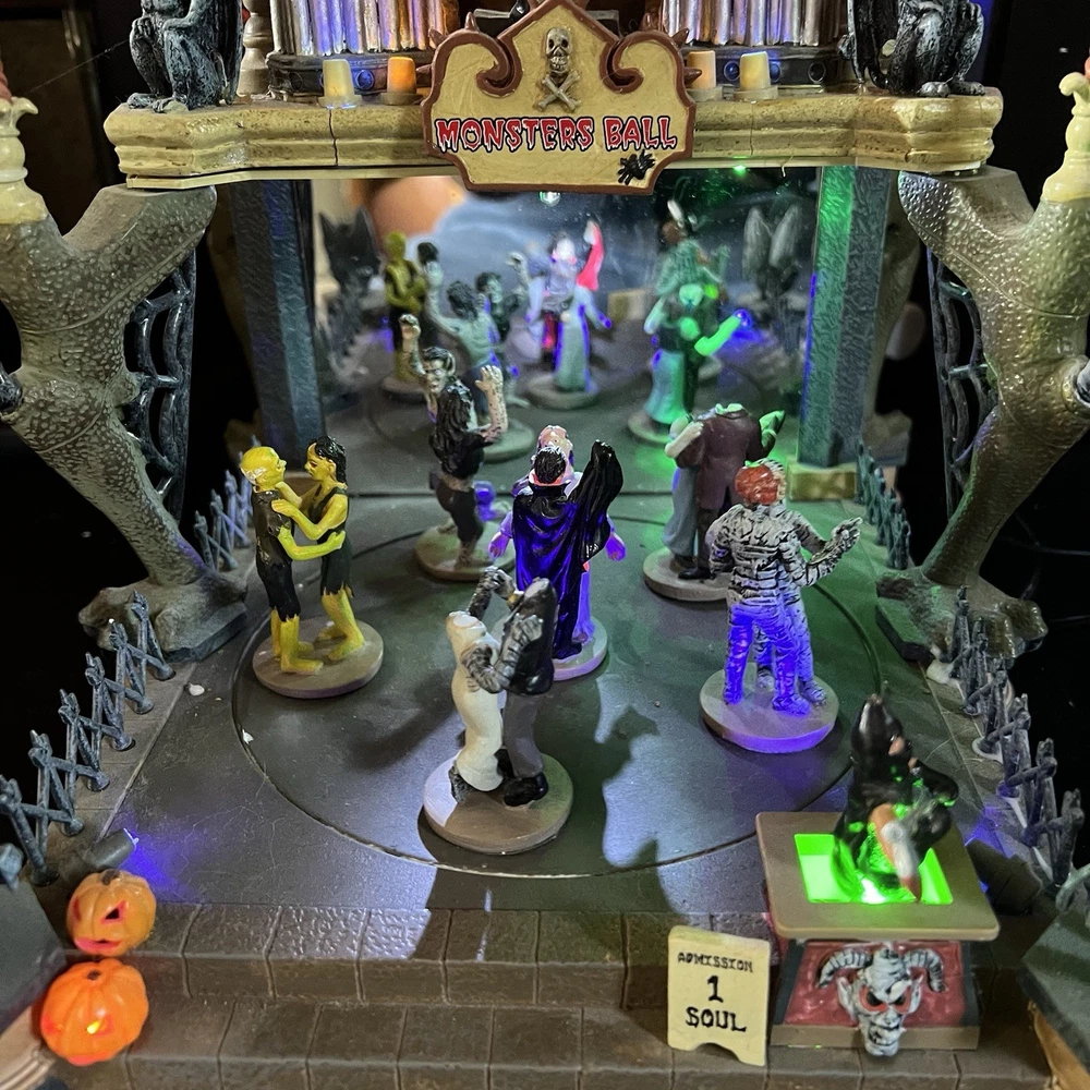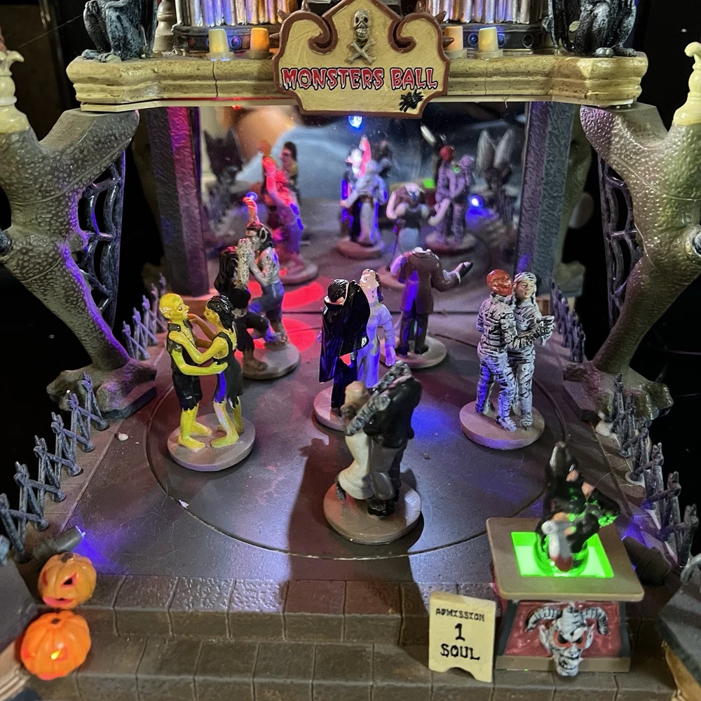 Lemax Creepy Barn Spooky Town Halloween Village Lighted 2005 RETIRED WORKS **** Mr & Mrs Frankenstein heads are missing Everything else is complete