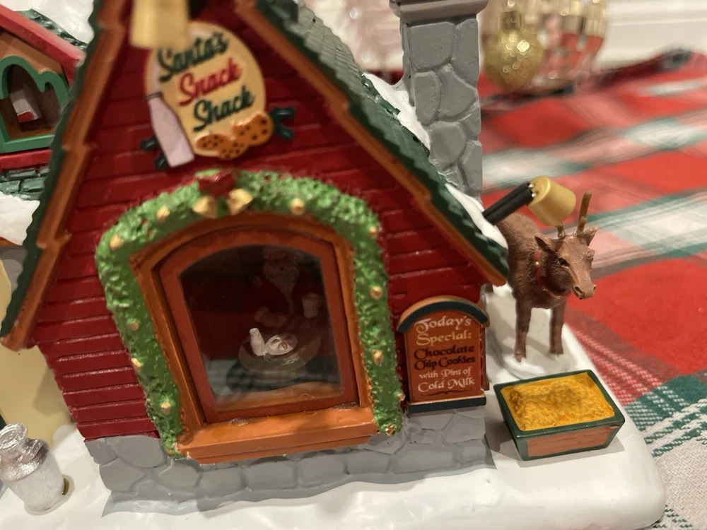 Brand New In Box. Originally $89.99. This is a part of the Lemax Santa's Wonderland Village collection, specifically Santa's Snack Shack. Perfect for collectors or those looking to create a whimsical winter display, this Christmas village item embodies the spirit of the holidays with its seasonal theme and detailed construction.