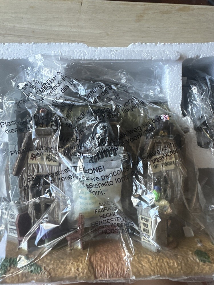 Lemax Spooky Town Coffin Cafe Porcelain Lighted Building #45675 With Light & Box New open box this was purchased at a estate sale Looks like it has never been used haunted cafe is still in plastic wrap and the light bulb in plastic wrap. Please see pictures for details Kindly send me a message if you have any questions. Thank you for looking 🎃 Bin 14