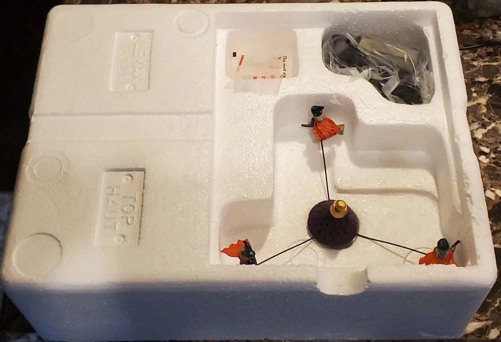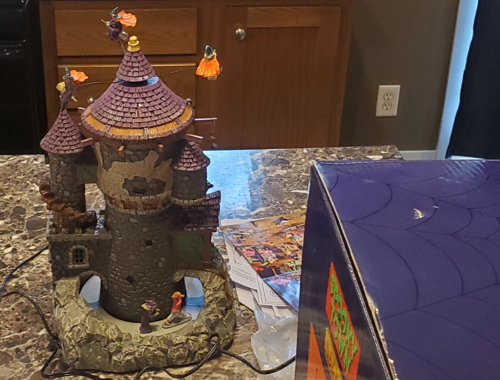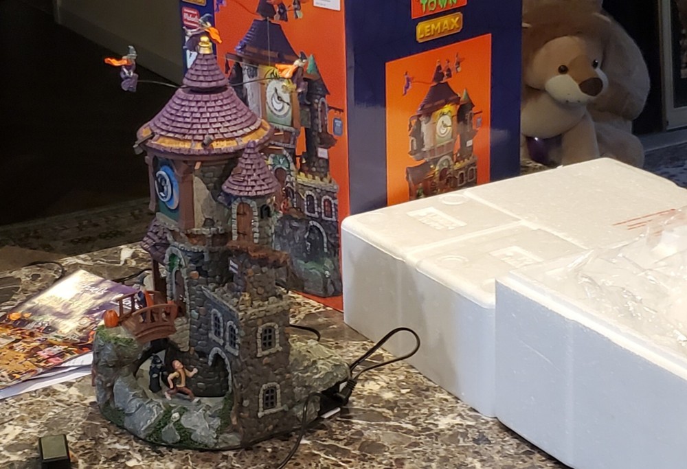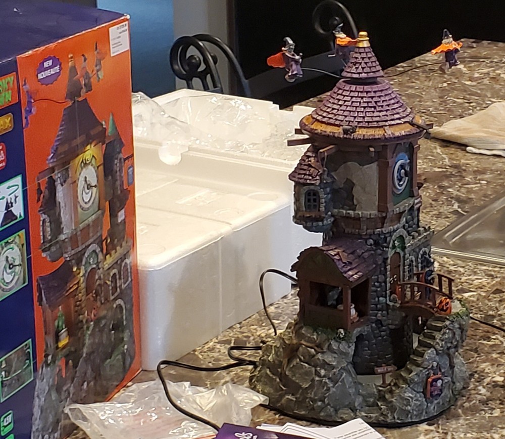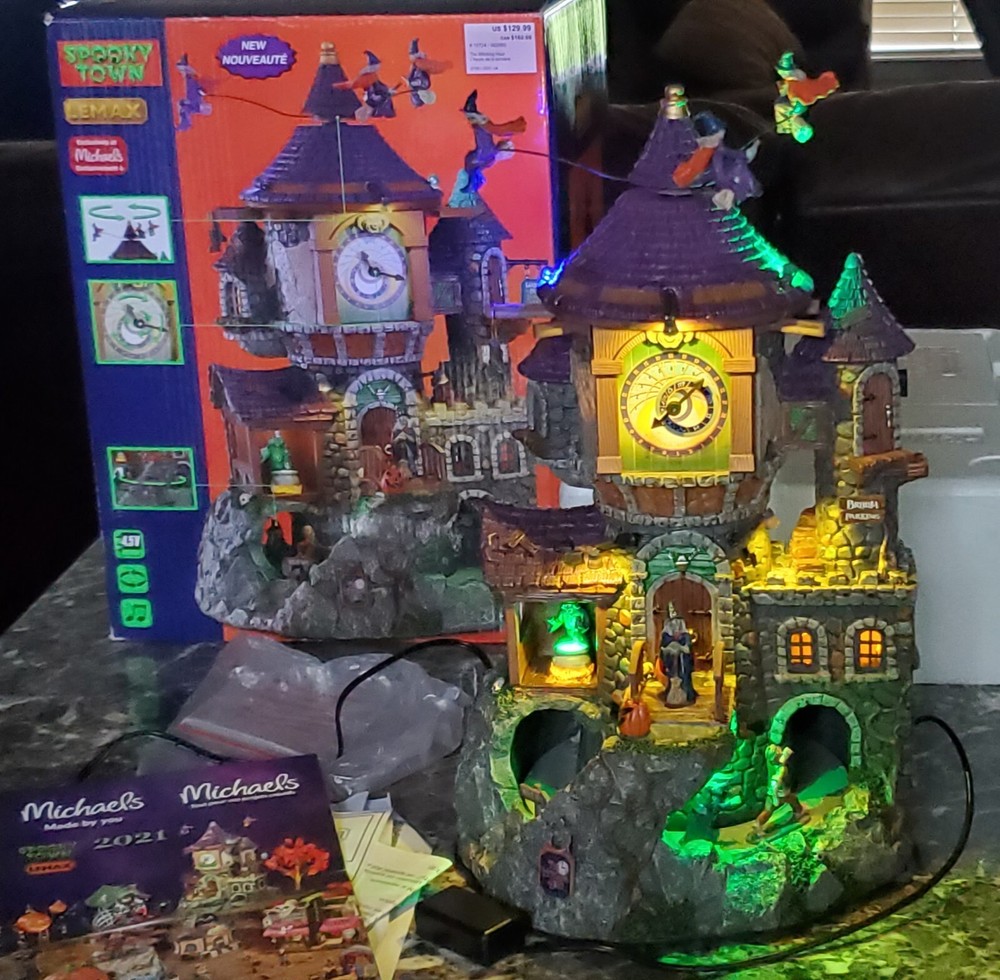 This works perfect with no issues whatsoever..I don't have the small launching pad sign that goes on right side of the house..this is in excellent condition same with the original packaging box..any other questions be sure to message me before buying..all orders are shipped within 24 hours after payment is received This Lemax Spooky Town piece features a witch's house with a round shape and a multicolor pattern. It is made of polyresin material and is illuminated, making it a perfect addition to any Halloween decor. The piece comes in a box and is an original, not a reproduction. The Witching Hour Halloween decoration is a great addition to any room and is perfect for adults. It is a 21st-century piece, manufactured in 2021, and is part of the Animals collection. The decoration is packaged in a box and is perfect for any occasion, especially Halloween.