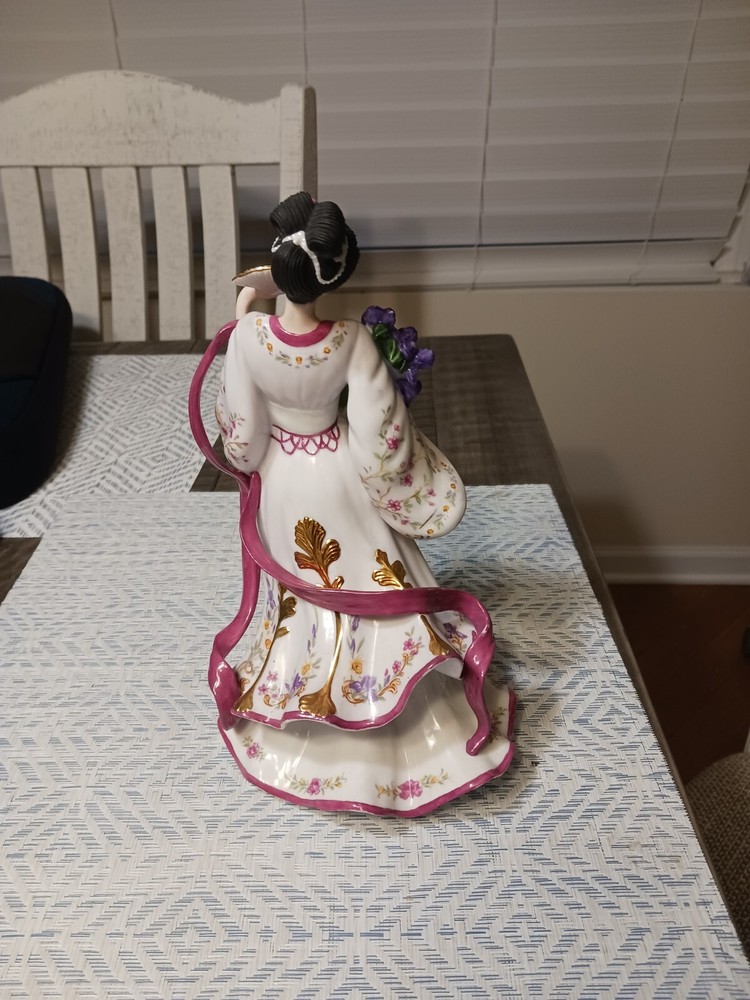 This stunning porcelain figurine captures pure elegance—the delicate details, flowing dress, and intricate iris flowers make it a breathtaking centerpiece. The craftsmanship is flawless, and the soft colors add a touch of whimsy. A must-have for collectors or anyone who loves timeless beauty! It looks even more amazing in person.