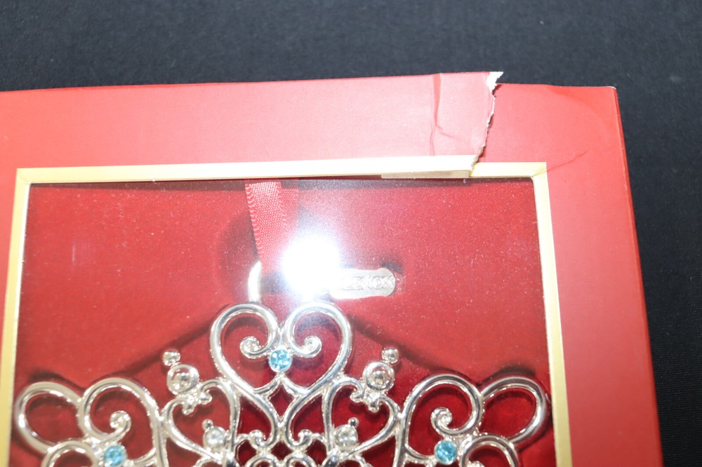 This stunning Lenox snowflake ornament is absolutely gorgeous—the intricate silver-plated details sparkle beautifully! Despite the damaged box (as noted), the ornament itself is flawless and brand new, making it a perfect holiday keepsake or gift. A fantastic deal compared to retail, and the seller provides clear communication. Highly recommend!