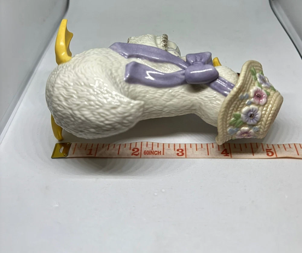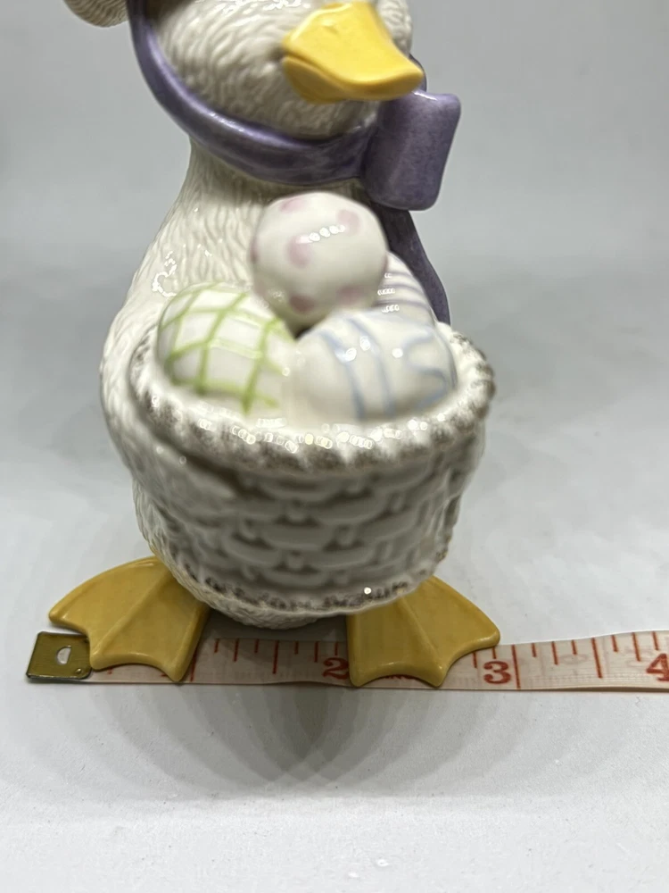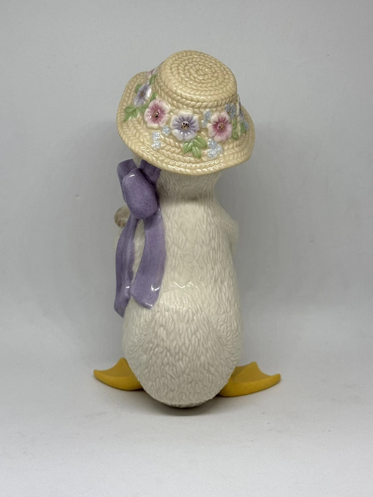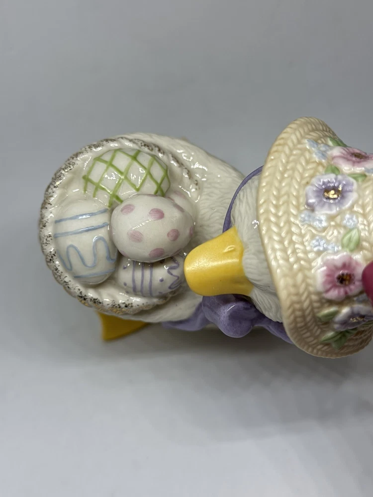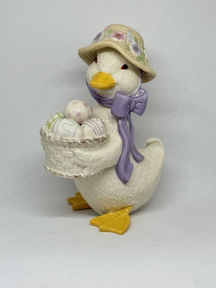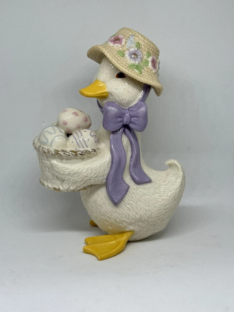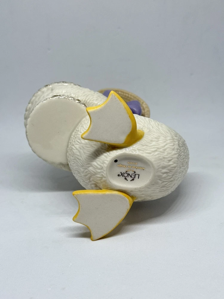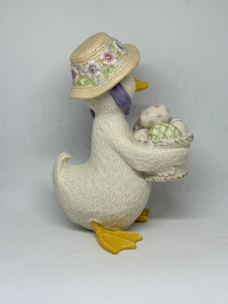 This Lenox Easter Collection figurine features a cute and colorful duck animal wearing a bonnet and holding a basket of eggs. Made of high-quality bone china, this small figurine measures 5 inches in length and 3 inches in width. It is perfect for adding a touch of traditional charm to your Easter decor or as a collectible item for adults. The multicolor duck figurine is a loose figure no box and comes from the Lenox brand. It is part of the Easter Collection and has a glossy finish. The piece is designed with a farm animal and seasonal theme, making it a great addition to any collection. Whether you're a collector or looking for a unique decoration, this Lenox figurine is sure to delight. Note: Item is in mint condition no cracks, no chips or damage! Item has been well cared for in a display case! It does not have the original packing or box! It will be packed with care! Thank you for stopping by!