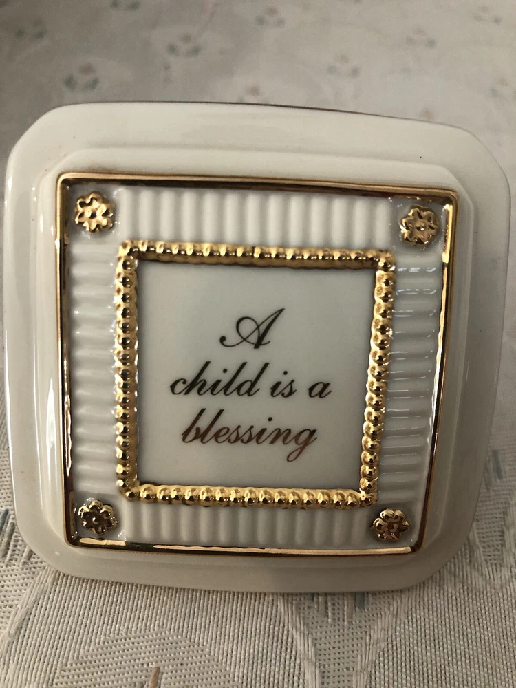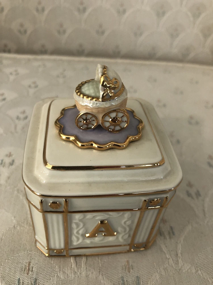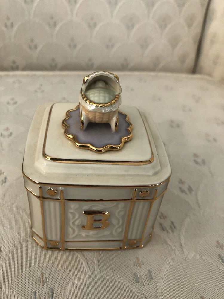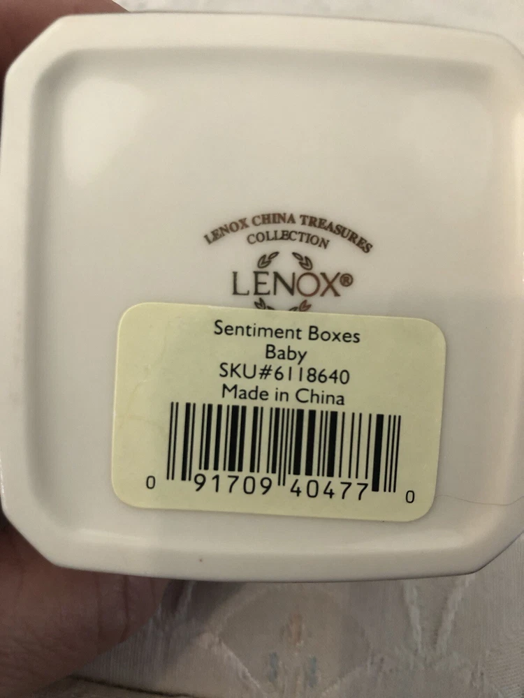 Era:Late 20th Century (1970-1999)Finish:GlossyRoom:NurseryHandmade:NoShape:SquareOccasion:New BabyMaterial:PorcelainEngraved:NoCountry/Region of Manufacture:ChinaType:Trinket BoxSize:SmallFeatures:BoxedOriginal/Reproduction:OriginalColor:MulticolorCustomized:NoTheme:BabyPackaging:BoxSubject:BoxingBrand:Lenox