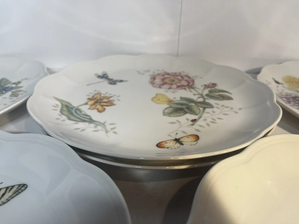 Lenox Butterfly Meadow 11" Dinner Plates Set Of 8 Floral Nature Theme Good condition, no scratches or chips. Photo 2: two of the same plate Photo 3: one of the plates is faded Photo 4: two of the same plate Photo 5: two of the same plate $25.99 or best offer $29.99 shipping