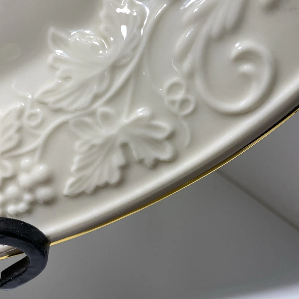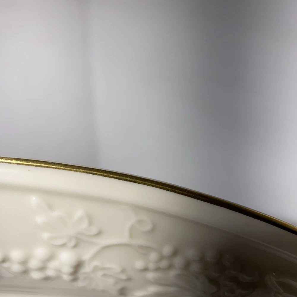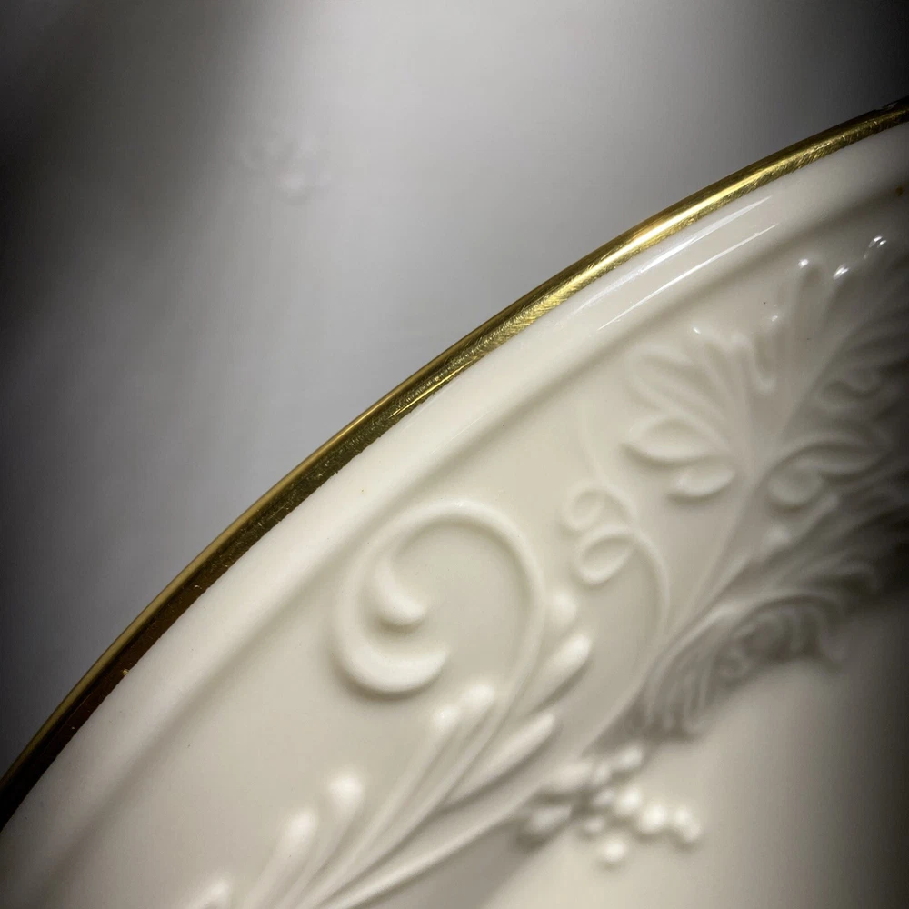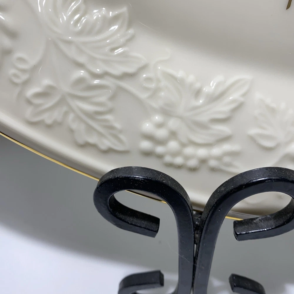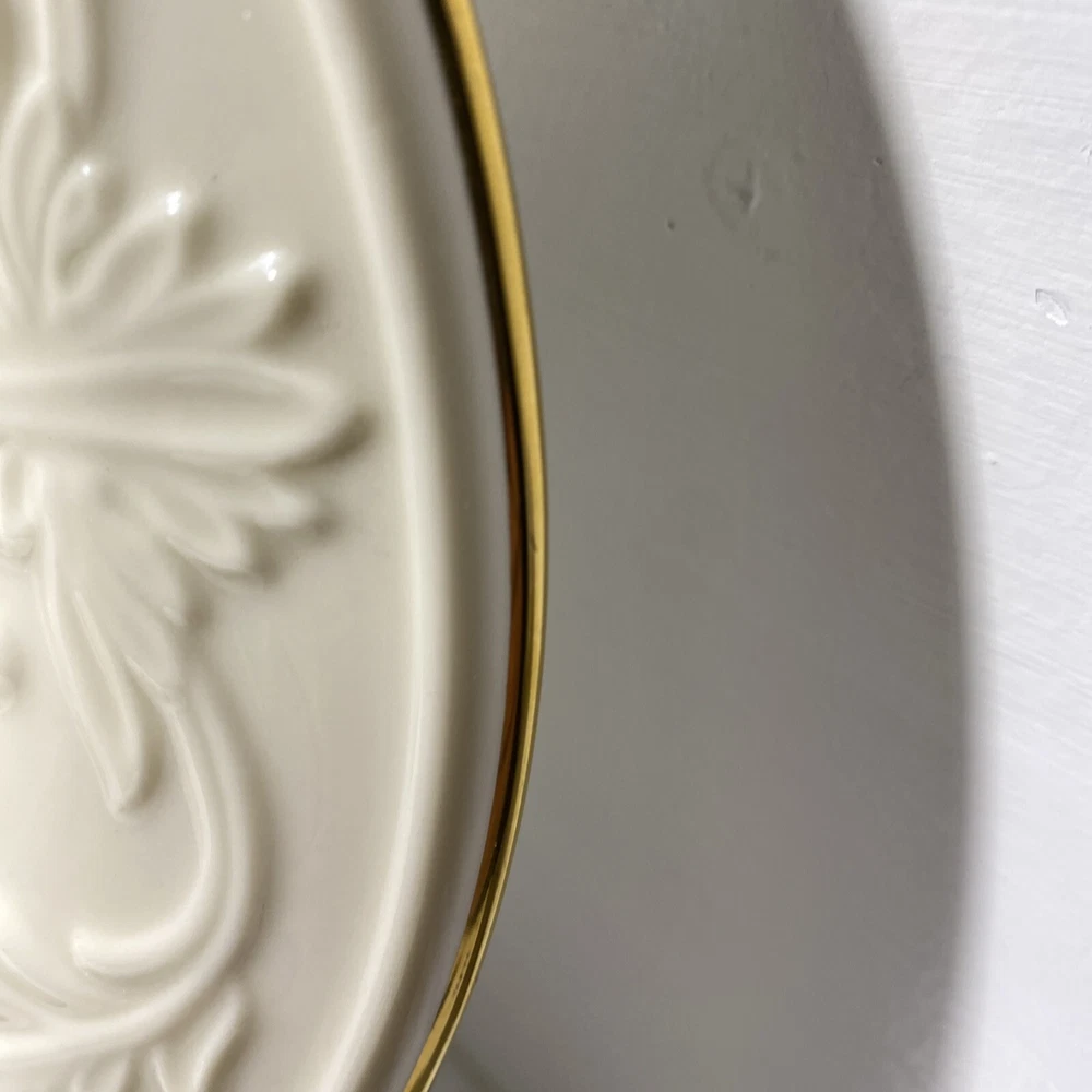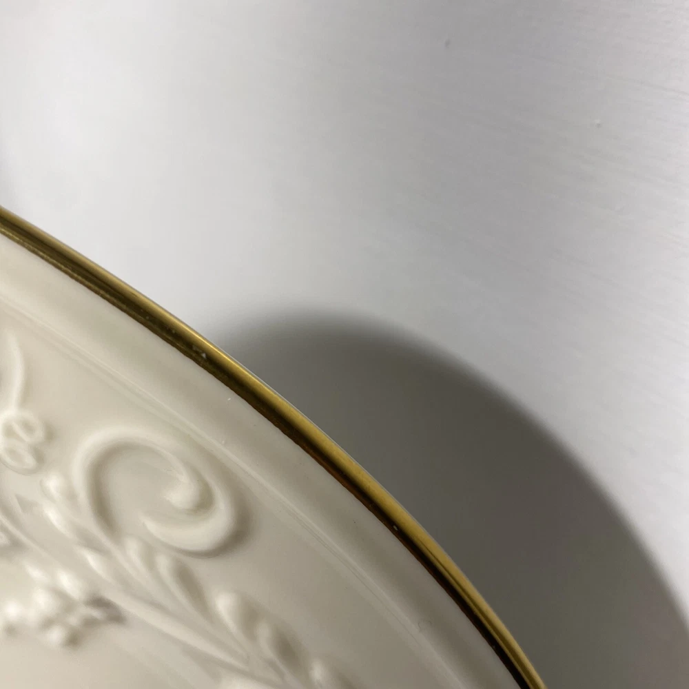 This Lenox Hallah Tray is a beautiful piece of Judaica that will surely enhance any collection. Measuring 16"x12", it is the perfect size to hold your favorite sabbath dishes. Crafted with the utmost care and attention to detail, this tray is sure to impress your guests and add a touch of elegance to your dining table. Its intricate design and high-quality construction make it a must-have for any Judaism enthusiast. Whether you're using it to serve food or displaying it as a decorative piece, this Lenox Hallah Tray is a great addition to any home., this plate is on excellent shape ,no chips or cracks