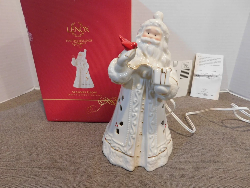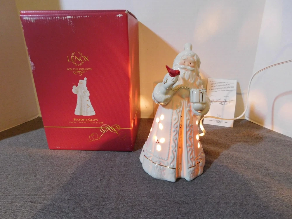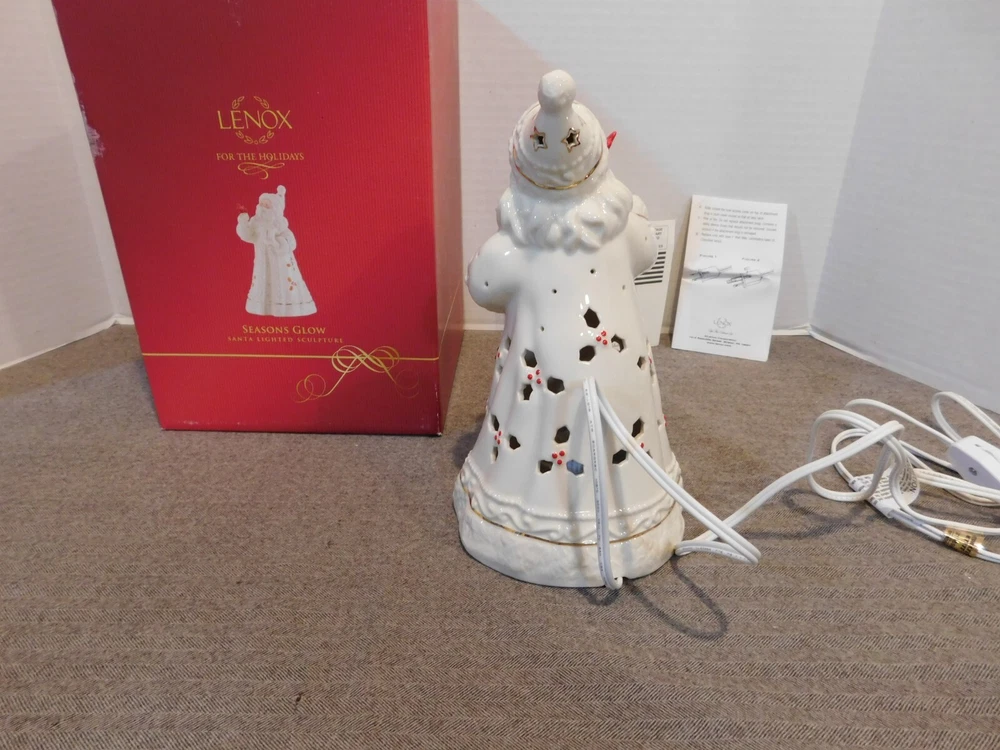 This lit figure measures 8-1/4" tall, 4-3/4" in diameter. It has a removable light cord for storage and an on/off switch. Works.