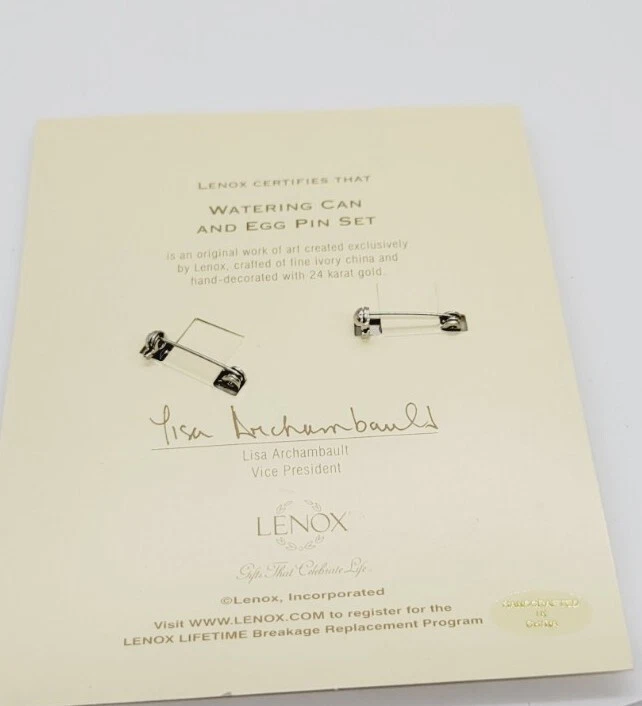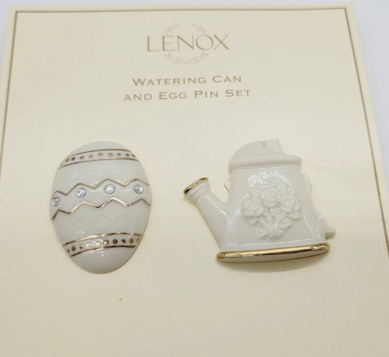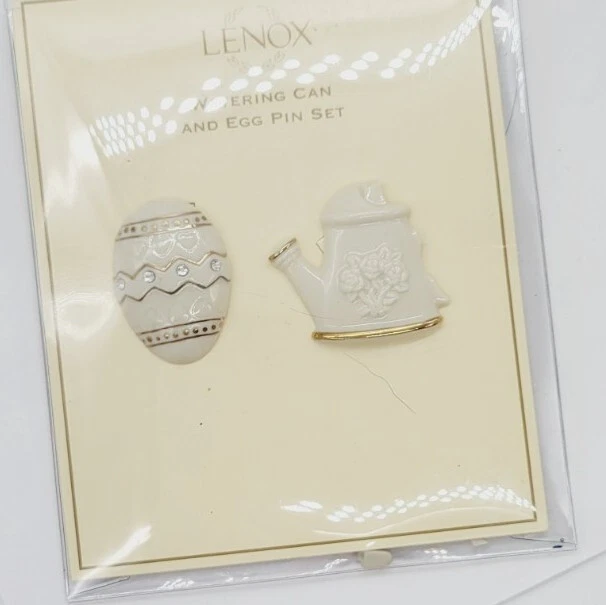 HomeLenox Watering Can & Egg Pin Set Fine Ivory China Spring Brooch Easter 24K