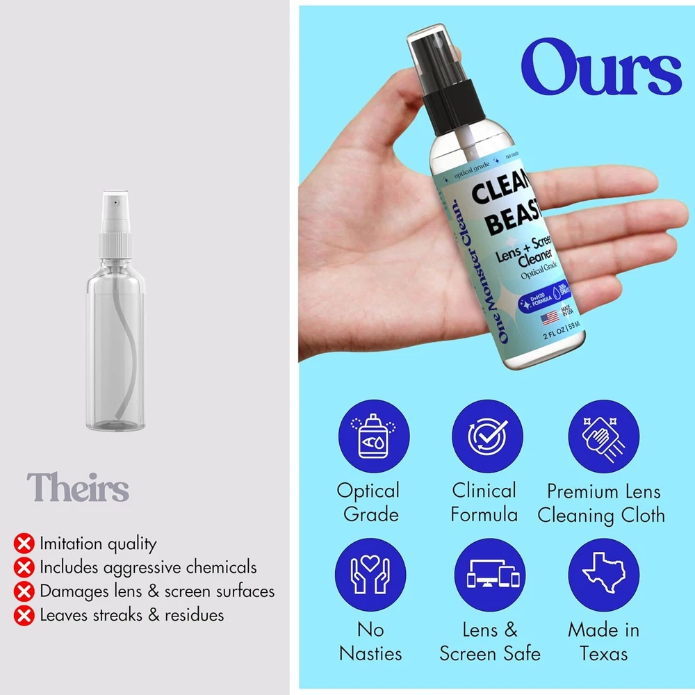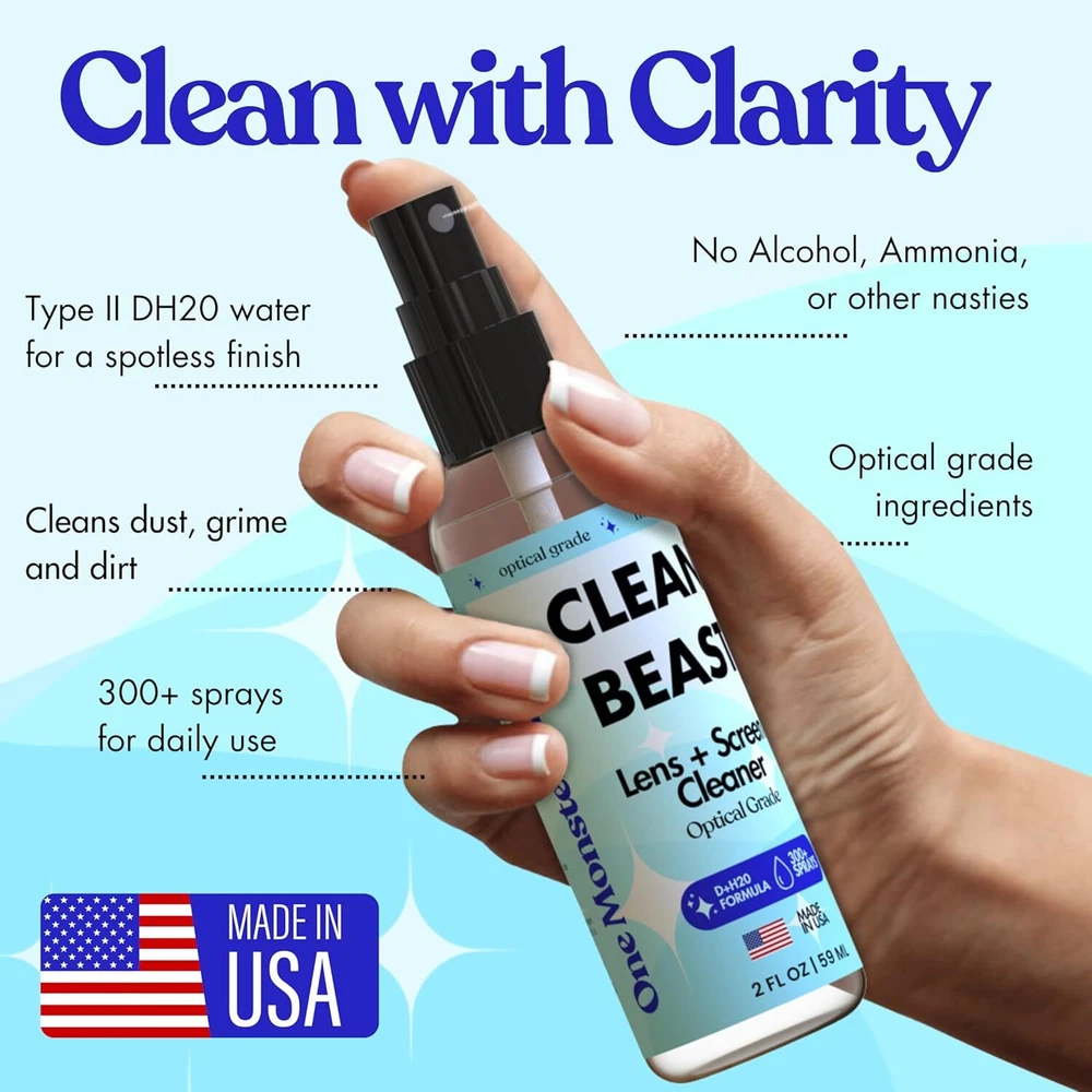 Free eBay listing template designed by dewiso.com Lens Cleaner Spray Kit – Includes a Microfiber Cloths, Eyeglass Cleaner and Glasses Cleaner Spray, Eye Glass Cleaner Spray, 2 oz (1 x 2 oz Bottle) – 300+ Sprays FREE AND FAST SHIPPING! About this item ALL-IN-ONE SOLUTION: Complete lens cleaning kit includes spray with microfibre cloth (20% nylon, 80% polyester) for eyeglass and sunglass care. SEE THE WORLD IN PERFECT CLARITY: This advanced, eye glasses cleaner goes BEAST MODE on dust, dirt, greese and grime on eyeglasses, phone lens, and camera lenses. USA MADE PRECISION FORMULA: Our formula is free of all the nasty stuff (harsh chemicals), scent-free and safe to use on many lens types: polarized, multi-coated, anti-reflective, blue light, anti-glare filters. MULTI SURFACE USE: This glasses cleaner spray doubles as a sunglasses cleaner, perfect for any pair you own. OVER 300 SPRAYS: per kit with a portable design for home, work, or travel Product We offer a 30-Day Return Policy on items which you are not completely satisfied with. You have the option for a full-refund or an exchange of the item. No returns are available on items shipped outside of the US . Shipping We offer Free Shipping to the US and ship within 2 business days of payment, usually sooner. We use UPS express shipping. That's why your products are usually delivered within 3 days . Contact We try our very best to make sure every customer is completely satisfied. If there's a problem , message us! We're happy to help. 24/7 live chat available.