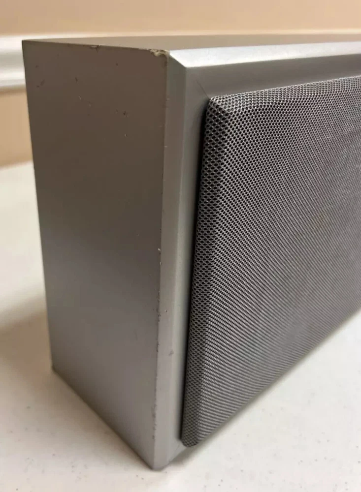 Elevate your audio experience with the Leon Horizon Series 57'' Soundbar Speaker Model Hz515. Meticulously crafted to deliver stunning sound quality, this wired soundbar is an ideal addition to any home entertainment setup. Its sleek silver design complements a wide range of interior styles, seamlessly integrating with your media room or living space. The rectangular shape of the Hz515 ensures a compact and versatile placement, while the reputable Leon brand promises a blend of performance and durability. Enjoy rich, clear audio that brings your favorite movies, music, and games to life with this sophisticated soundbar speaker system. soundbar is used cosmetically it is in good condition w/ minor dents no rips or tears on cover tested and in working order shipped with FedEx and packed carefully for proper delivery included everything you see in pictures message me for questions if any inconvenience arises message me first thanks for looking at my listing