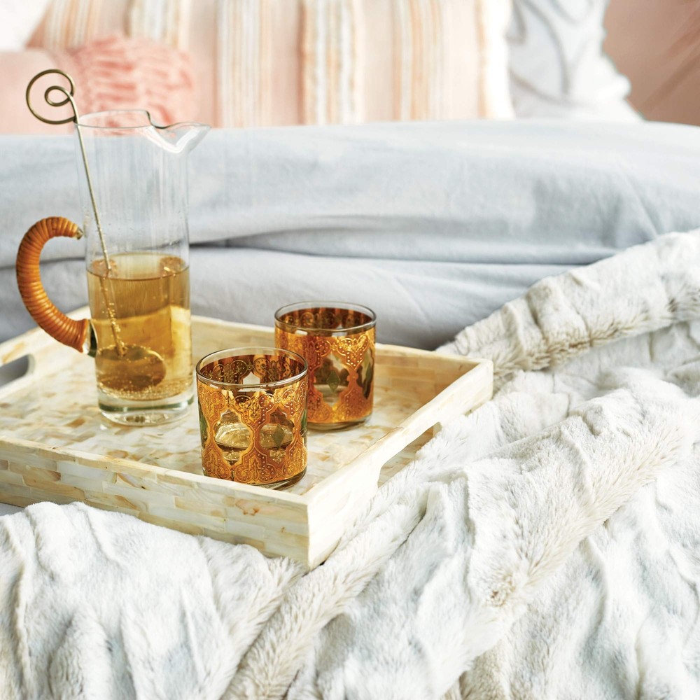 Your next cozy night in just got a stylish update with the super soft Snow Leopard Throw. With tones of ivory and natural hues this plush throw will complement your existing home décor. The faux fur finish has an irresistible soft texture which is perfect for curling up in when you need extra warmth. FAUX FUR BLANKET Get comfy and stay warm with our incredibly soft faux fur throw blanket; Reversible with fur on both sides SUPER SOFT THROW BLANKET Inspiring designs and exceptional fabrics create a luxurious look and feel SOFT & ELEGANT Cozy and comfortable, modernly vintage styling coordinates with most bedroom decors PERFECTLY LAYERED Experience a classic and simple look that transitions from season to season Includes 1 blanket; Measures 50 x 60; Machine washable