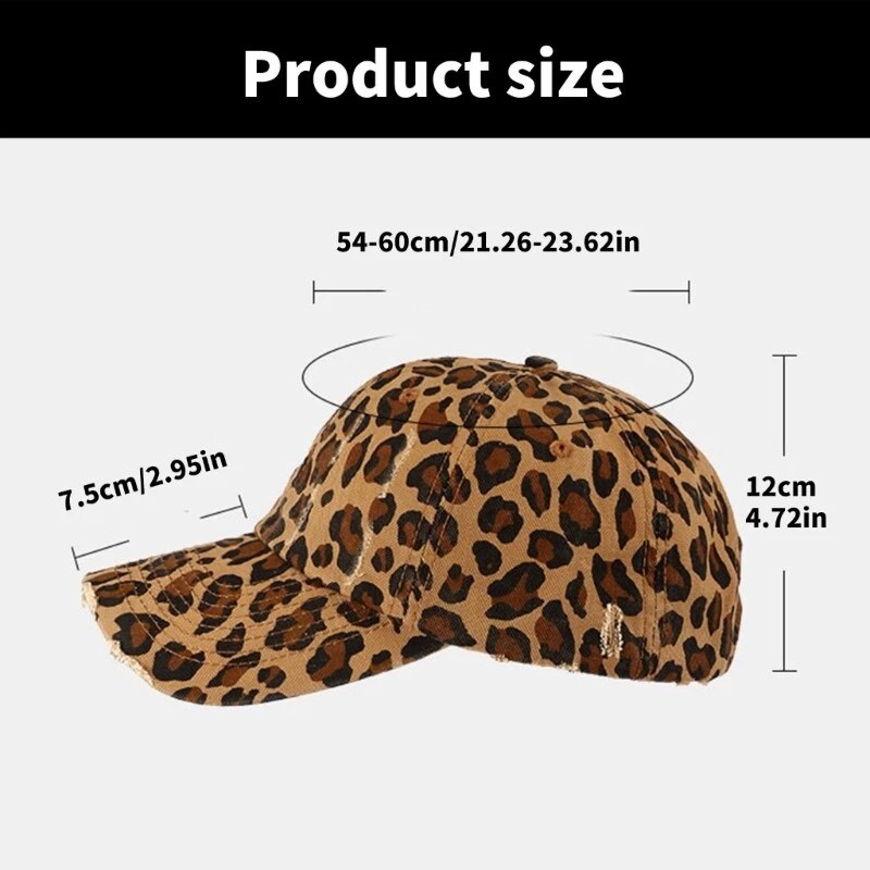 Leopard Print Women Sun Caps Trendy Comfortable Baseball Hat Popular Headwear Features: Embracing the retro with our distressed leopard print baseball hat, blend of vintage styles and modern lookings, designed to make you stand out on the street. Use selected cotton, this Caps features adjustable for various head size, ensuring comfortable and durability while maintaining its trendy aesthetic. Great for fashion forward individuals, both men and women, who like to show their unique styles and follow with the latest trends. for a variety of occasion, whether enjoy a casual wear, the streets in styles, engaging in outdoor sports, or embarking on a travel adventure. This multiuse accessory not only add a touch of personality to your outfits but also serves as a practical headwear for sun protections during your daily activity. Specifications: Product Dimension: approx. Head circumference 56-58cm/22.05-23.62inch Component: Cotton Color Option: 2 optional color as pictures shown Package Includes: 1PC Baseball Hat note: Please allow 1-2cm errors due to manual measurement. Due to the differences between different monitors, the picture may not reflect the actual color of the item.