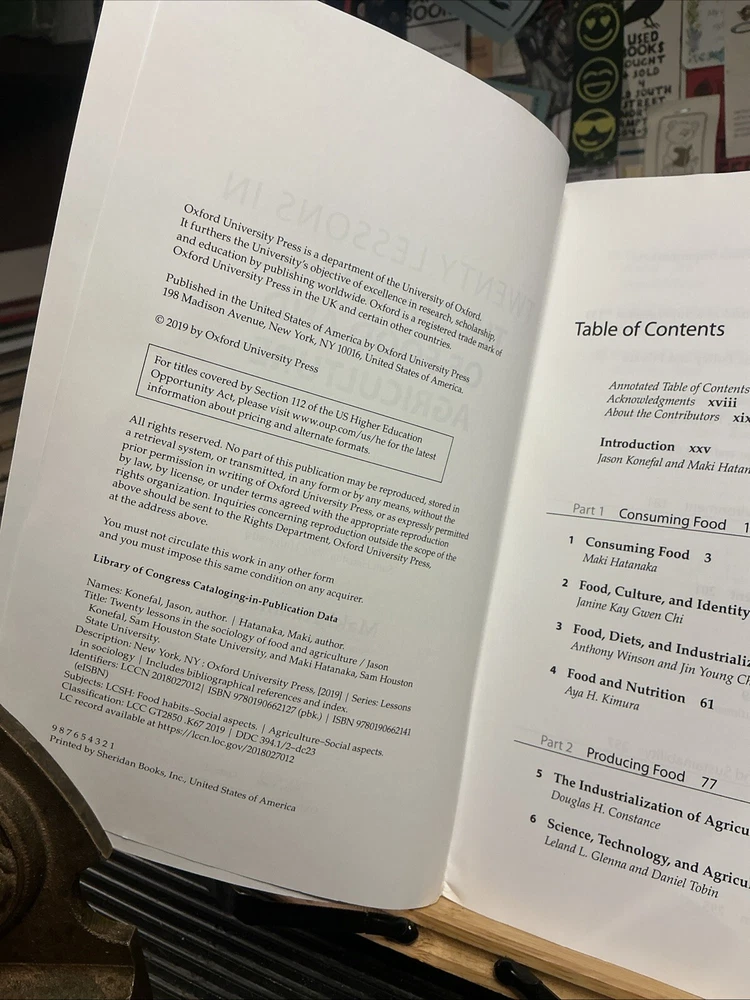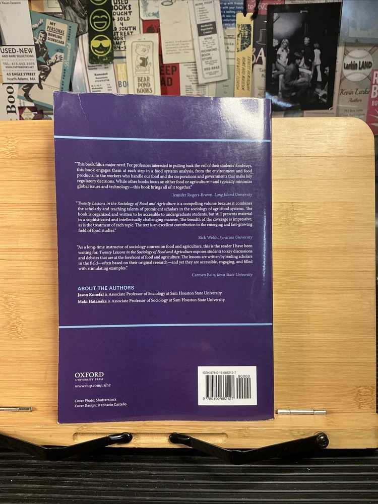 The product is a textbook titled "Twenty Lessons in the Sociology of Food and Agriculture" from the series "Lessons in Sociology Ser." The book, authored by Maki Hatanaka and Jason Konefal, was published by Oxford University Press in 2018. It spans 432 pages and provides insights into the intersection of sociology, agriculture, and food systems. The textbook is intended for those interested in sociology, agriculture, and food policy, offering a comprehensive exploration of these subjects in the English language. T29