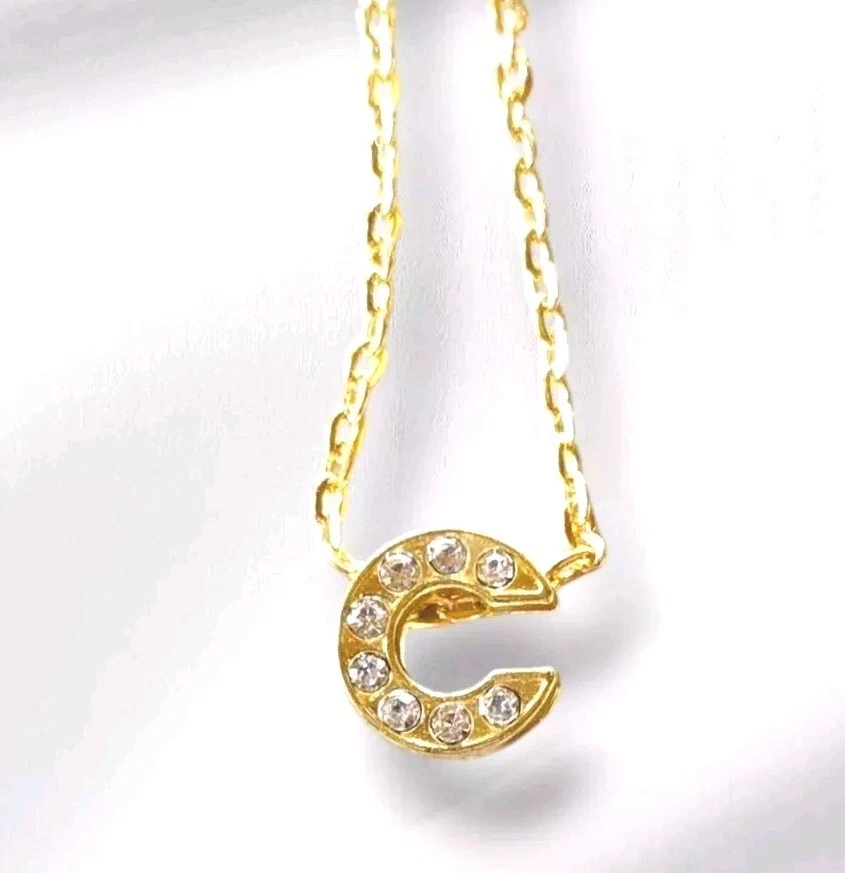 Country/Region of Manufacture: United States Material: Rhinestone Personalize: No Customized: No Seller Warranty: Yes Occasion: Anniversary, Birthday, Christening, Christmas, Confirmation/Communion, Engagement, Graduation, Mother's Day, Valentine's Day, Wedding Closure: Lobster Vintage: No Style: Charm Main Stone Color: White/Colorless Wholesale: No Country of Origin: United States Chain Type: Cable Brand: Unbranded Color: Gold Pendant Shape: Asymmetrical Signed: No Main Stone: Crystal Type: Necklace Pendant/Locket Type: Alphabet/Letter Main Stone Shape: Round Metal: Rhodium Plated Necklace Length: 18 in Theme: Letters, Numbers & Words Base Metal: Stainless Steel Features: Nickel-Free Antique: No Handmade: No