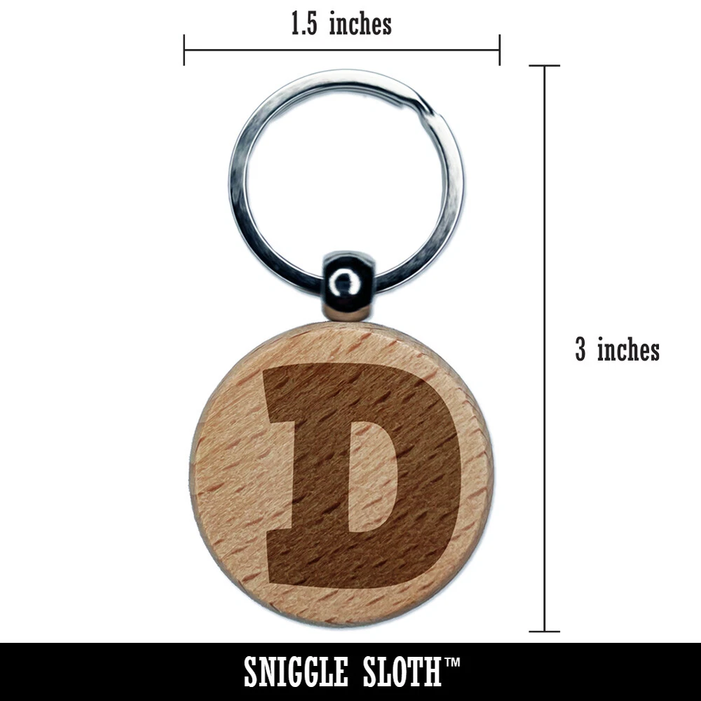 Letter D Uppercase Fun Bold Font Engraved Wood Round Keychain Tag Charm