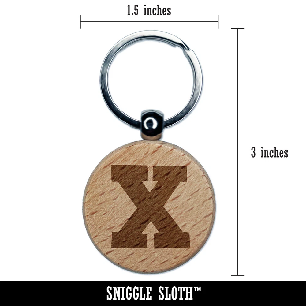 Letter X Uppercase Fun Bold Font Engraved Wood Round Keychain Tag Charm