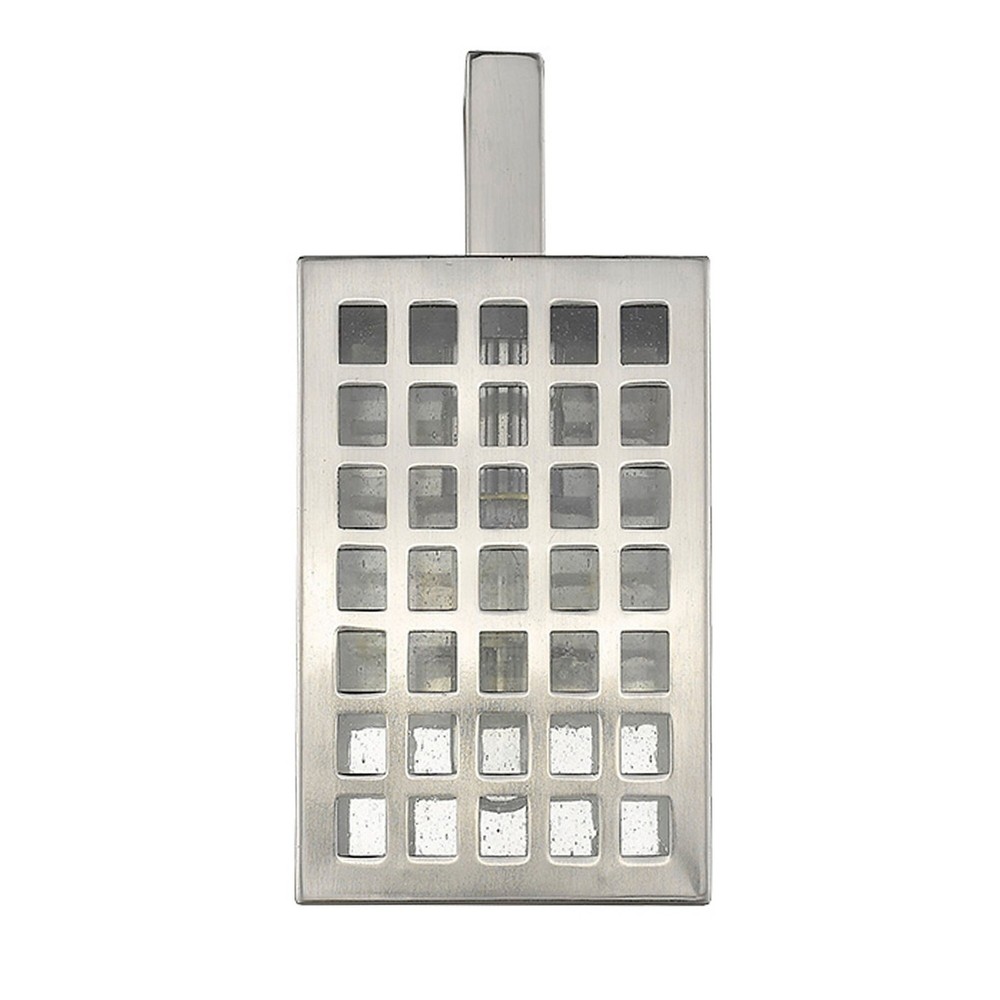 Though there are squares, Letzel is not square. A framework of steel in a continuous grid pattern combines with clear, seedy glass. Letzel is available in oil-rubbed bronze and satin nickel.Beautiful Satin Nickel finish.Clear, Seedy Glass Panes.Pre-assembled for easy installation.Requires: One (1) 100-Watt Max, Medium Base Bulb (Not Included).Installation hardware included.1 Year Warranty.Fixture Dimensions: 10.75 inches high x 5 inches wide x 7 inches deep. Free Shipping Over $49.99* Details Letzel 1-light Satin Nickel Exterior Wall Fixture Product Description: Though there are squares, Letzel is not square. A framework of steel in a continuous grid pattern combines with clear, seedy glass. Letzel is available in oil-rubbed bronze and satin nickel. Beautiful Satin Nickel finish. Clear, Seedy Glass Panes. Pre-assembled for easy installation. RequiresOne (1) 100-Watt Max, Medium Base Bulb (Not Included). Installation hardware included. 1 Year Warranty. Fixture Dimensions10.75 inches high x 5 inches wide x 7 inches deep.