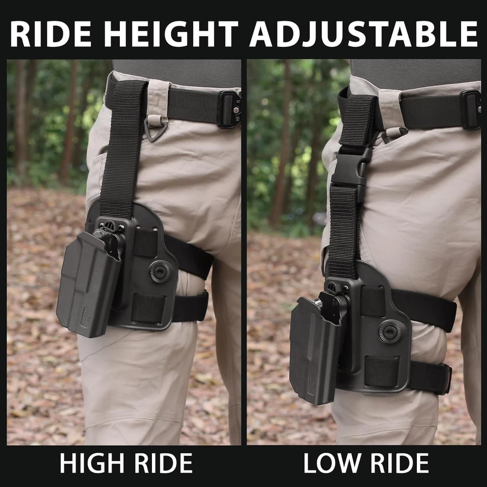 Upgrade your tactical gear with this high-quality drop leg holster. Designed for Glock G19 Gen 3-5, G19X/44/45, and Glock G23/32 Gen 3-4, this holster offers a secure, comfortable, and efficient carry solution. Key Features: Custom Fit: Specifically designed for Glock models Level II Retention with Thumb Release: Secure and quick draw Adjustable Leg Strap: Customizable fit for optimal comfort Durable Polymer Construction: Built to last Magazine Holster Compatibility: Convenient side-by-side carry All sales are final. Please refer to the manufacturer's warranty for any product issues. Please double-check compatibility before purchasing. Order your Level II Tactical G19 Drop Leg Holster today and elevate your tactical readiness!