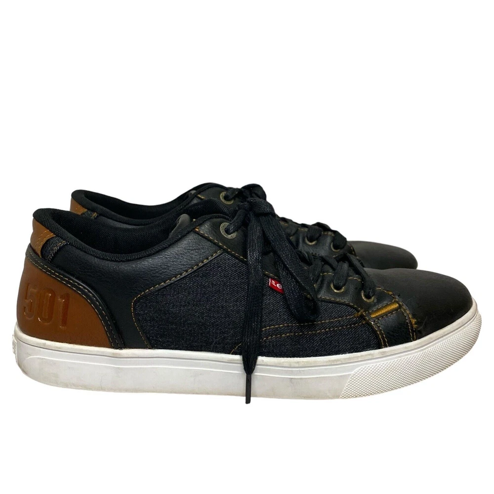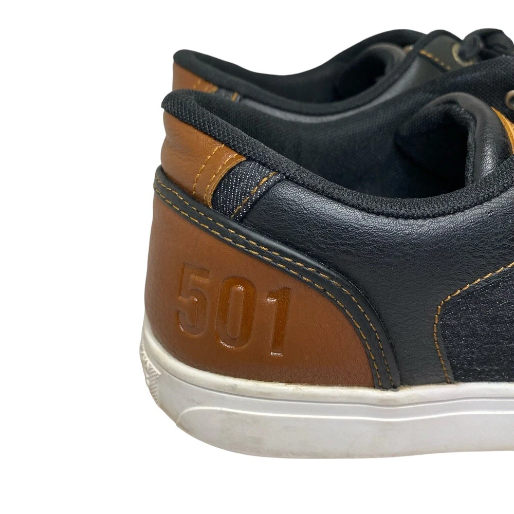 Pre-Owned, GREAT Condition! Men’s Levi’s 501 Low Top Sneakers Black Brown leather canvas Smoke free environment