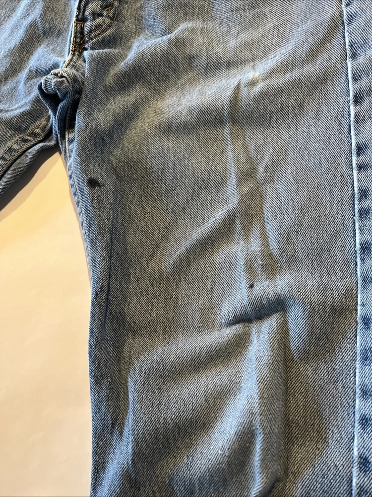 32in waist 32in inseam Has staining/hole on legs. Fraying on leg cuffs