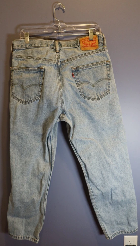 Preowned Levi’s Jean in great shape. Zipper and buttons are free from any damage. There is a very faint stain on left leg (pictured) but isn’t noticeable unless up close. Please see photos for best depiction of item’s condition. (Stain is in last photo around kneecap area.)